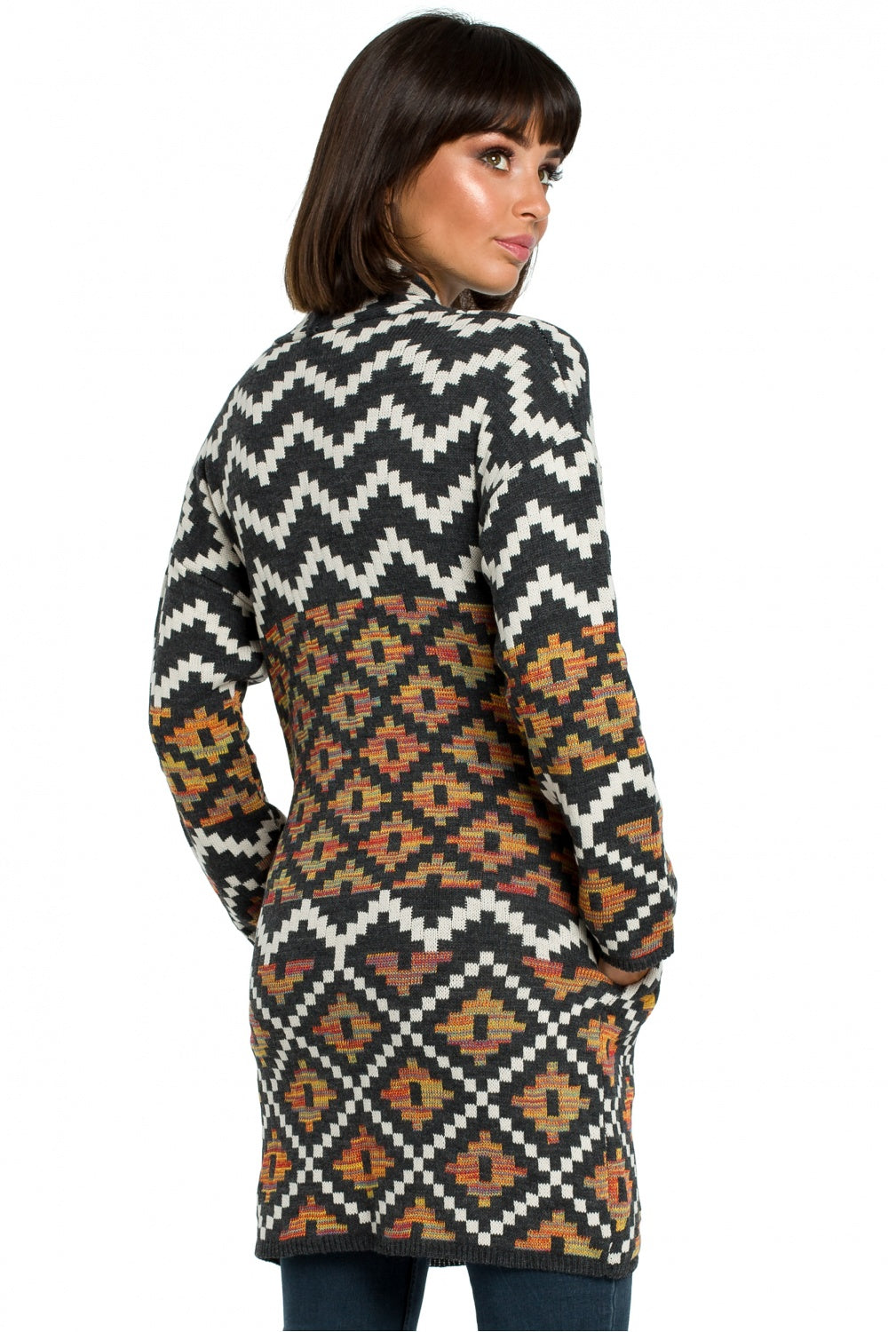 Un cárdigan único y desabrochado con un colorido estampado azteca te abrigará en los días fríos y te encantará con su diseño único. El cárdigan tiene bolsillos en las costuras laterales.