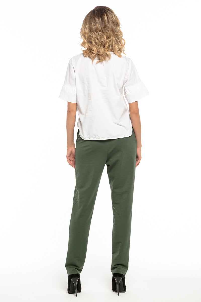 Elegante pantalón con ribete y bolsillos, confeccionado en punto de algodón. Ideal para diversas ocasiones.