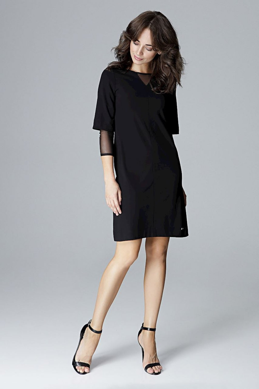 Corte sencillo, perfecto para todo tipo de figuras. Escote semicircular con inserción de malla transparente, mangas largas con efecto de doble capa desde el codo, con una transparencia a la moda.