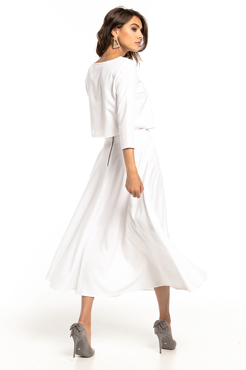 Blusa corta hasta la cintura con mangas 3/4 y escote semicircular. Ideal tanto para diario como para ocasiones especiales.