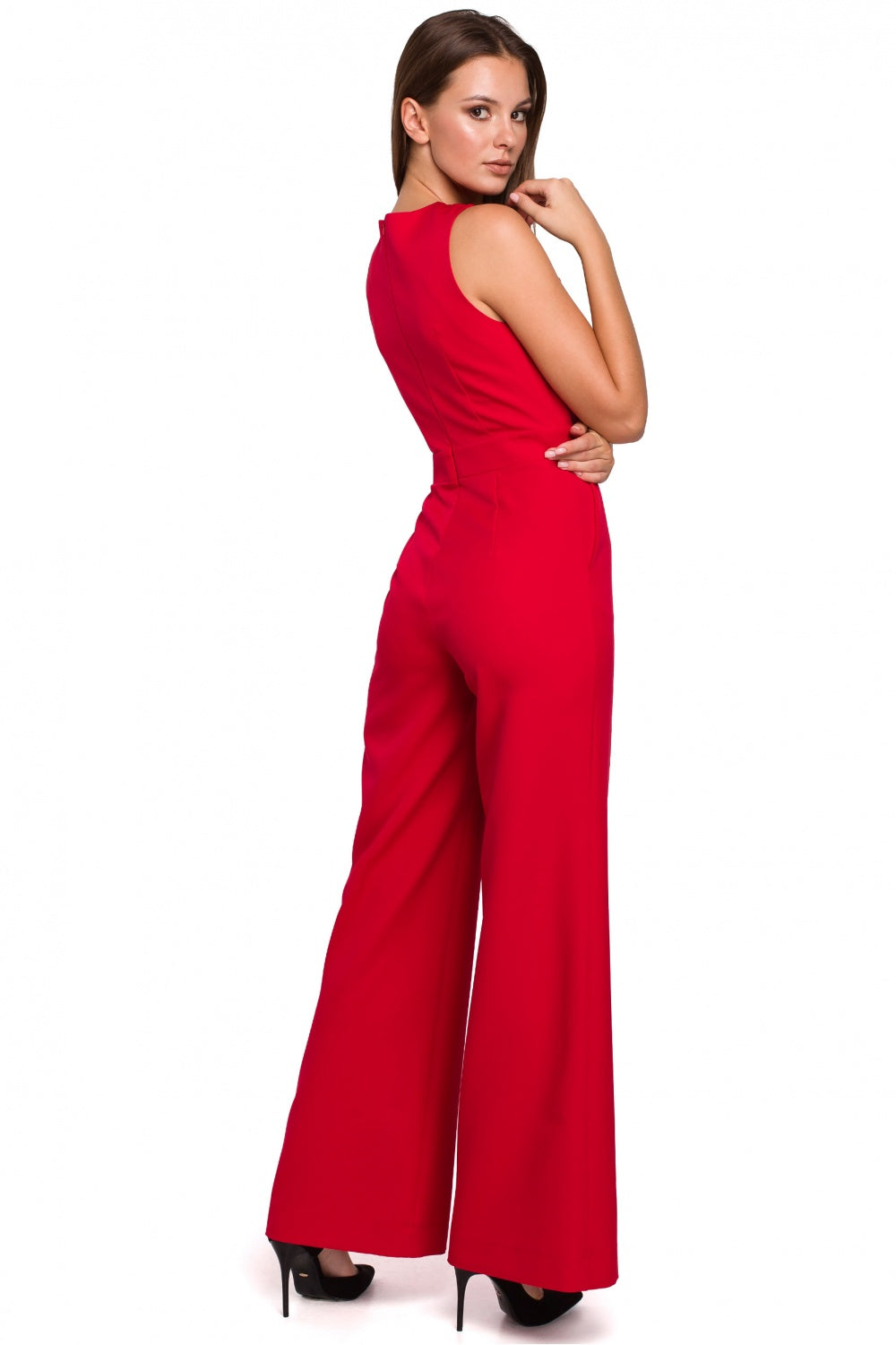 Mono con una interesante y moderna forma de rayas en la parte superior, transversales. El pantalón se ajusta a la cadera, realzando la silueta femenina y se extiende con elegancia hacia la parte inferior. Una cremallera oculta cierra el traje. ¡Con este modelo, puedes crear un look único para ocasiones especiales!