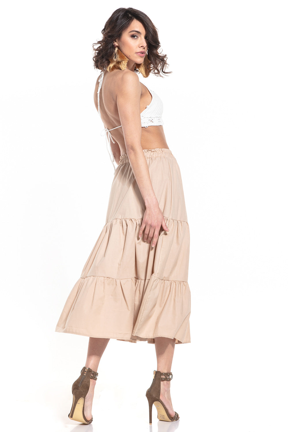 Falda con cinturilla elástica en tejido vaporoso de algodón.