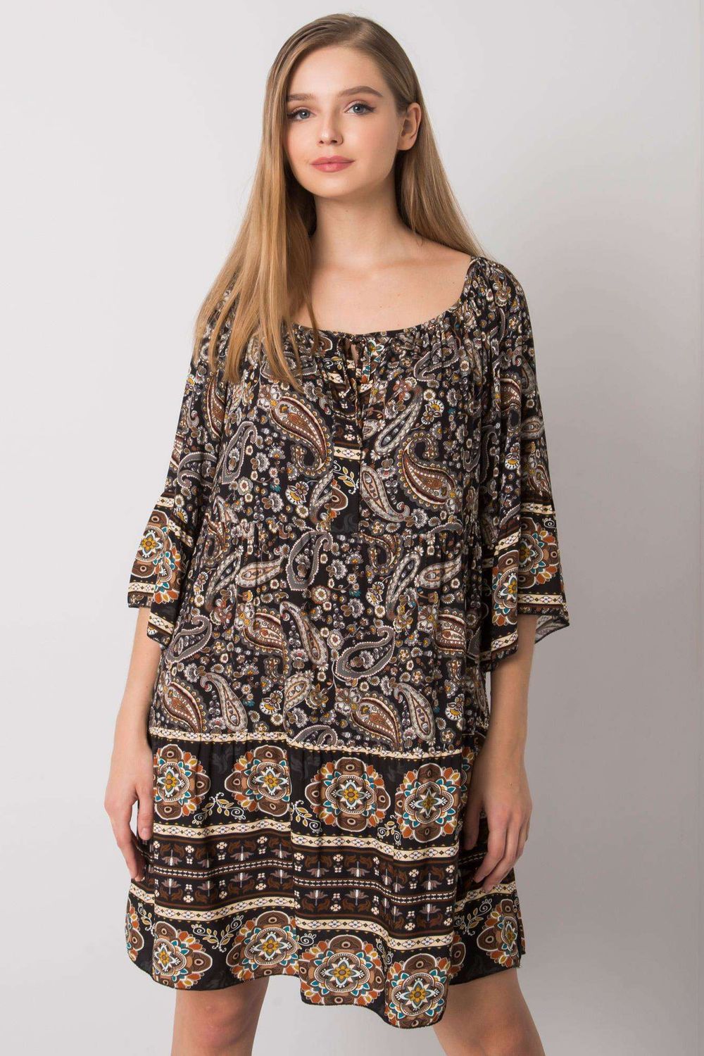 Vestido estampado con manga 3/4 y escote redondo. Vestido de corte holgado ideal para muchas ocasiones.
