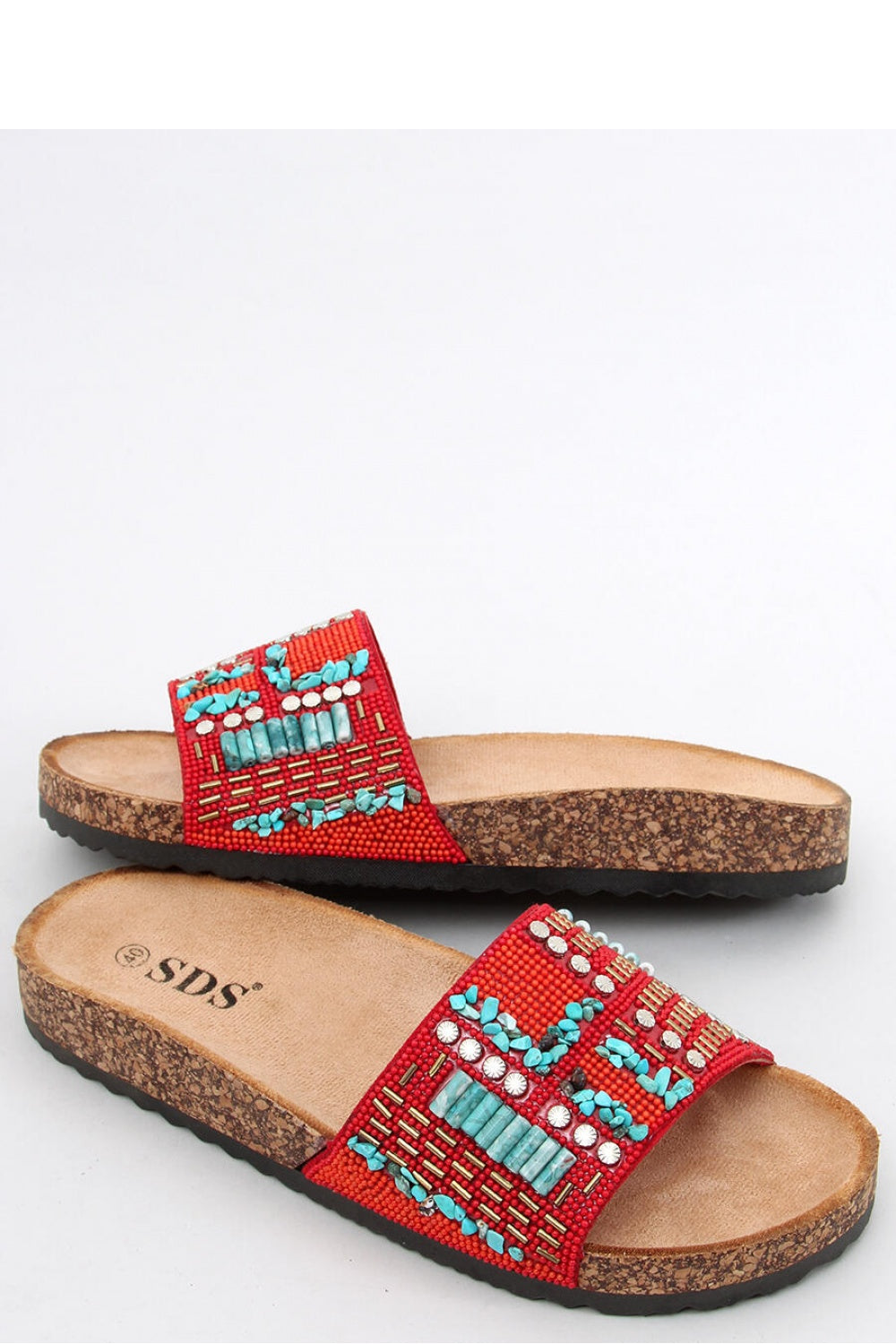 Chanclas de mujer con suela de corcho. El modelo se distingue por decoraciones impresionantes en estilo étnico. El conjunto crea un aspecto festivo muy consistente... El interior perfectamente perfilado y acolchado con tela será perfecto para largos paseos de verano: ) ¿Material externo? Ante ecológico.