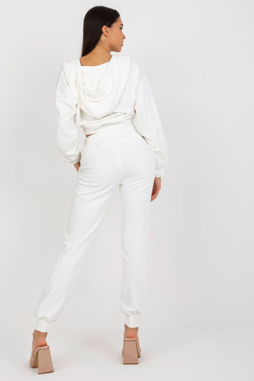 Conjunto de sudadera y pantalón. Sudadera corta con mangas largas, capucha y escote cruzado. Pantalón largo con lazo en la cintura y bolsillos.