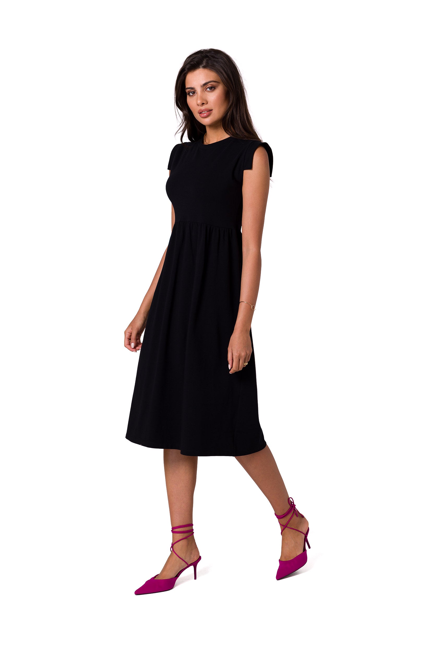 Un imprescindible para las vacaciones, un vestido midi con cintura alta y sin mangas.