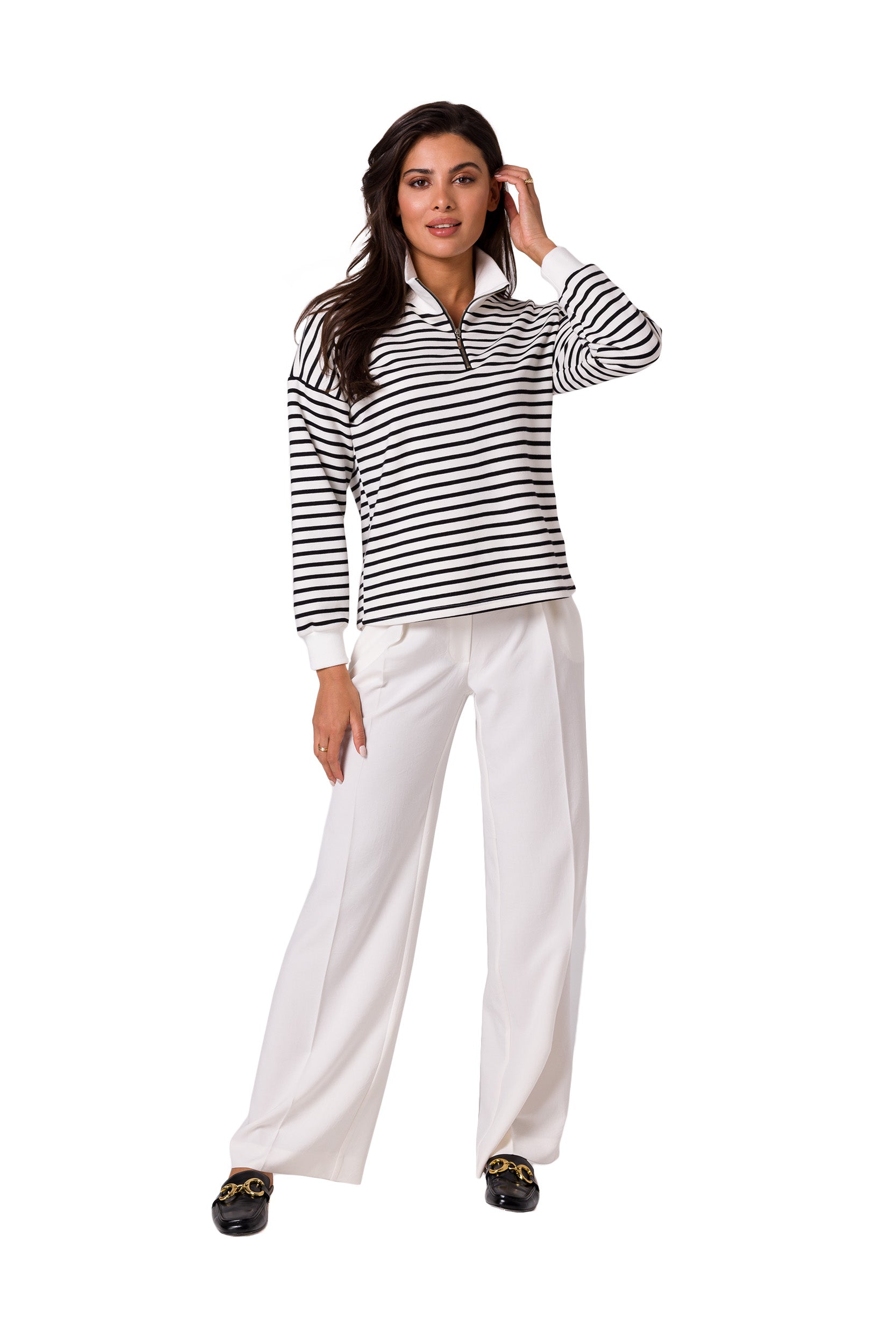 Cómoda sudadera de cuello alto y cremallera, para los días más frescos de primavera y verano confeccionada en tejido de punto de algodón a rayas.
