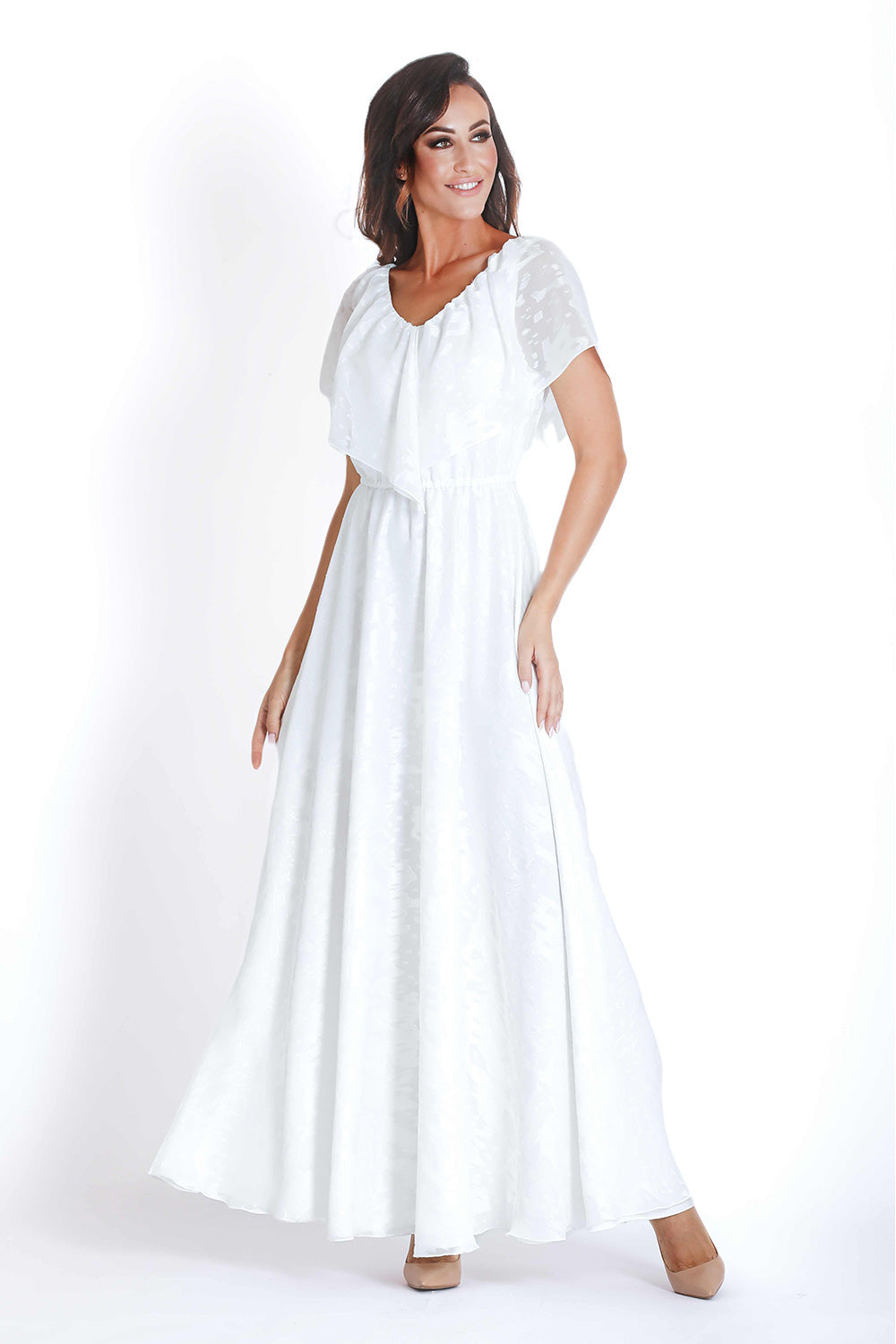 Un vestido largo aireado. El estampado original y el atractivo ribete del escote crean un conjunto elegante. La base perfecta para el estilismo veraniego, que quedará bien tanto para una cena con amigos como para una fiesta de boda. El material del que está hecho es gasa.