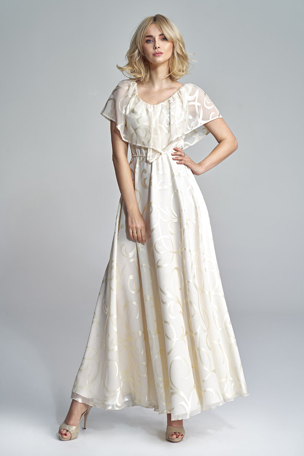 Un vestido largo y elegante que resaltará perfectamente el carácter único de todas las celebraciones de verano. Los materiales con los que está confeccionado son multiseda con un delicado estampado y satinolycra. 95% Poliéster, 5% Elastano