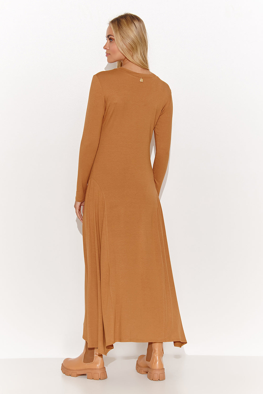 Este vestido largo de viscosa es ideal para quienes valoran la comodidad y el estilo. Su parte superior ajustada realza la silueta, mientras que la parte inferior acampanada aporta ligereza y libertad de movimiento. La manga larga lo hace adecuado para diversas ocasiones, y el escote de corazón le aporta sutileza y elegancia. El oropel decorativo cosido en la espalda es un detalle llamativo que realza su singularidad. Este modelo es ideal para el trabajo, pero también para el día a día, para un paseo con amigas. Está disponible en tres colores clásicos: negro, grafito y camel. Llévalo con botas icónicas para crear un look diario cómodo y a la moda. También puedes combinarlo con elegantes tacones de aguja para ocasiones más formales. Sea como sea, te dará libertad de movimiento y añadirá clase. Su tejido vaporoso y su corte único lo convierten en un vestido que te encantará elegir para muchas ocasiones diferentes.