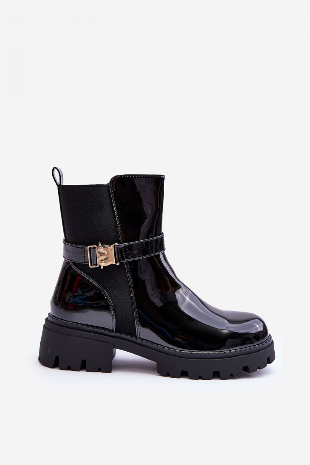 Las clásicas zapatillas de mujer estaban hechas de cuero ecológico. Se cierra con cremallera en el lateral del zapato. Interior aislado con manta para zapatos. En la parte superior hay una correa con un adorno. Este modelo se asienta sobre una enorme plataforma y un tacón plano. El talón está reforzado. Estos zapatos serán perfectos para la temporada de primavera y otoño.