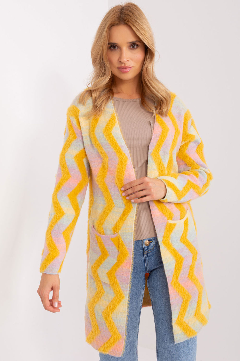 Este cárdigan es ideal para el día a día. Hecho de material suave, es cómodo de llevar. Su estampado geométrico le da personalidad, y al no tener cierre, es fácil de poner y quitar. La manga larga abriga en los días más fríos, y su largo estándar lo hace ideal para una amplia variedad de faldas, vestidos y pantalones. Es una prenda informal que aportará originalidad a tus looks de diario.