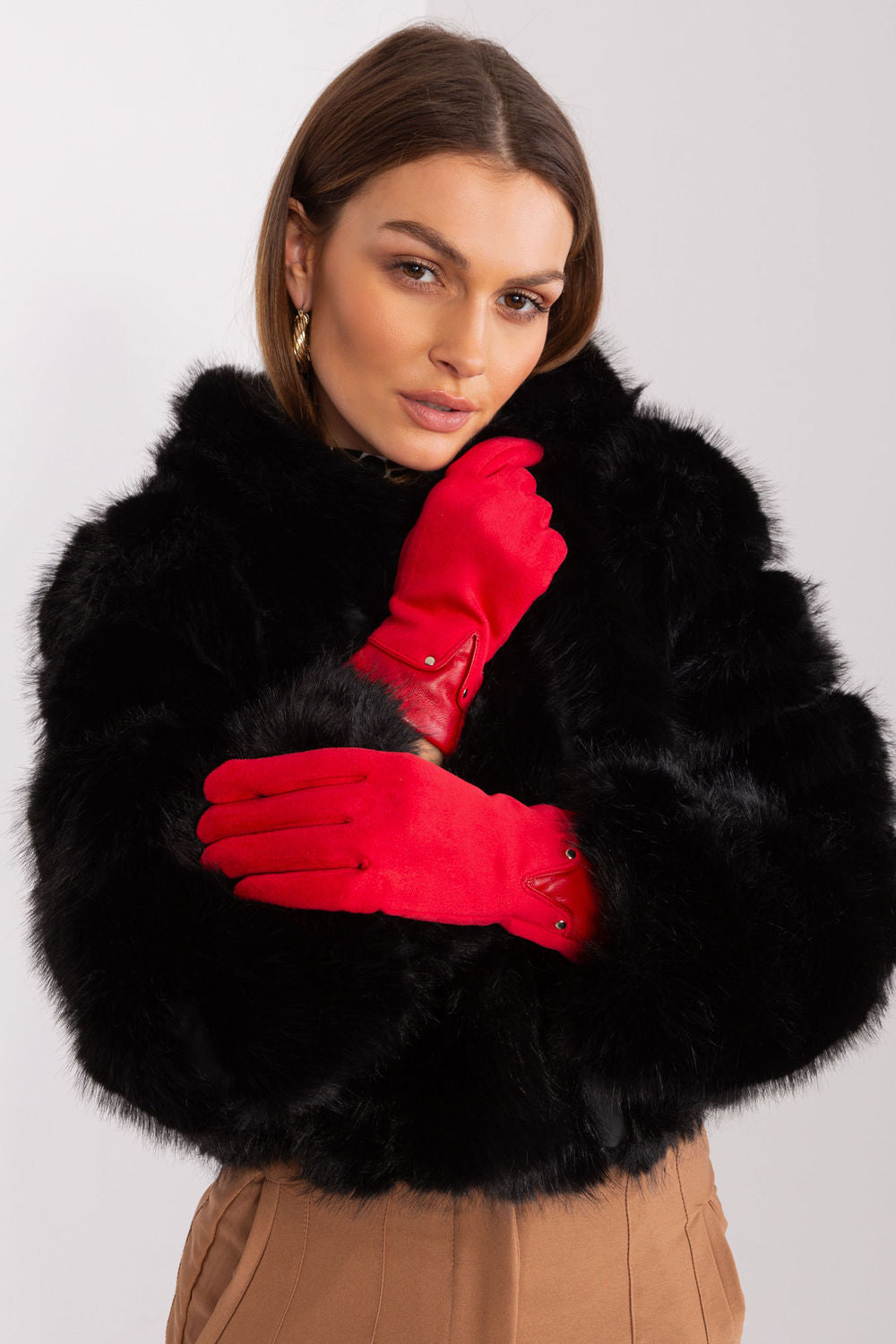 Elegantes guantes de mujer fabricados con una combinación de dos materiales diferentes. Pulgar e índice con una flor bordada, que te permite manejar tu teléfono sin tener que quitarte los guantes.