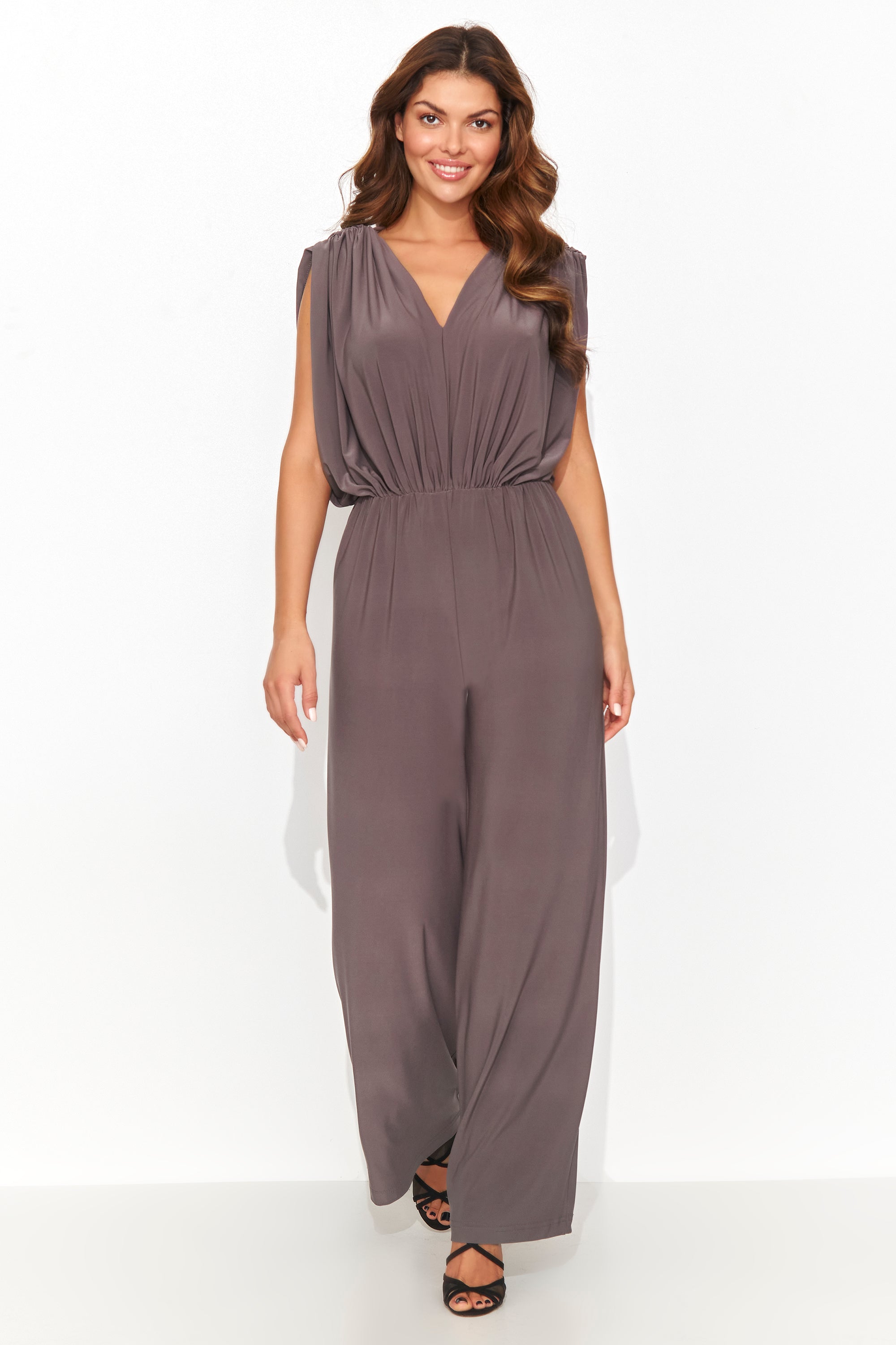 Elegante mono de mujer disponible en seis colores excepcionalmente atemporales. Su corte casual ofrece comodidad y facilidad de uso. Presenta elegantes pliegues a la altura de los hombros. El escote de corazón no solo realza el busto, sino que también alarga el cuello, aportando una sutil elegancia. Las perneras largas y anchas son una prenda atemporal que combina a la perfección con diversos estilos de calzado. El mono está confeccionado en un material resbaladizo y extremadamente agradable al tacto, lo que lo convierte en un verdadero placer. Es la opción ideal para quienes aprecian lo clásico y la comodidad a la vez.