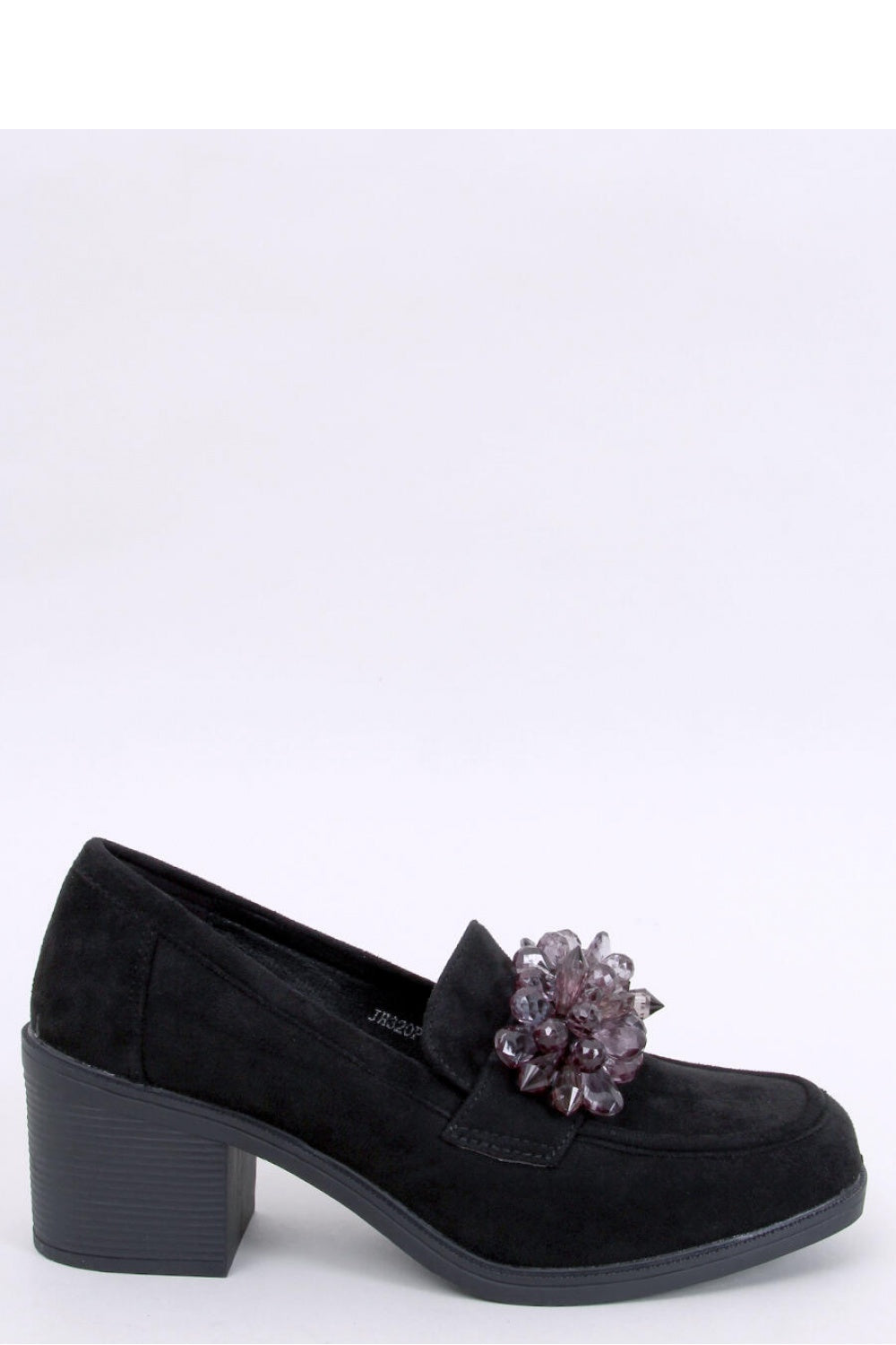 Mocasines de mujer en ante con altura de tacón de 6,5 cm. La impresionante aplicación de cristales brillantes hace que no los pases indiferente : ) Mientras que el tacón ancho y estable garantizará comodidad en cada paso. ¡Si quieres lucir único entonces debes tenerlos! ¿Material exterior? Ante ecológico.