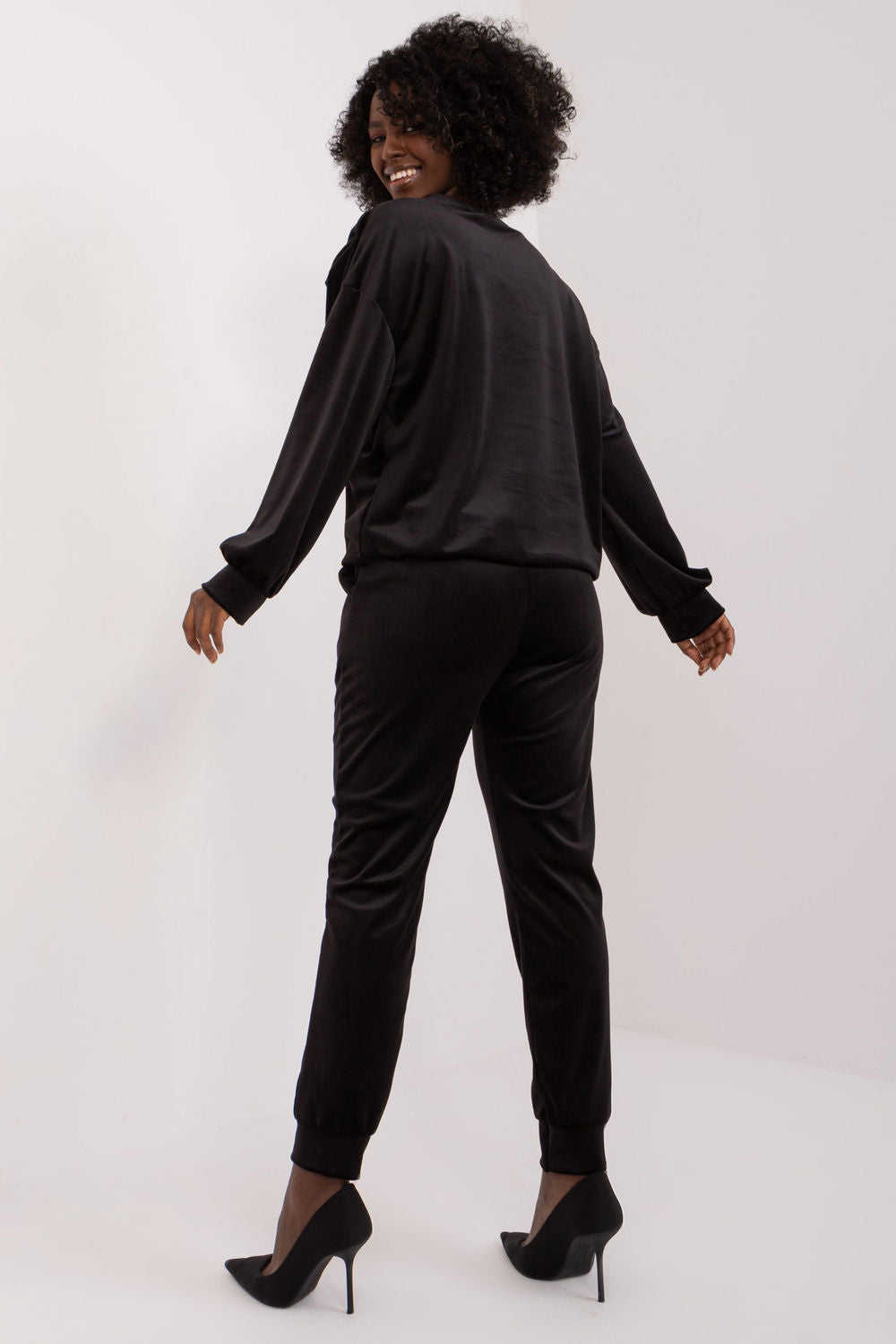 El conjunto de sudadera y pantalón de terciopelo es una excelente opción para quienes aprecian la combinación de comodidad y estilo casual. Diseñado para el día a día, este conjunto no solo ofrece comodidad, sino también un look moderno. El material predominante es el poliéster suave, que le da al conjunto un acabado elegante y lo hace agradable al tacto. El largo estándar de la blusa y el pantalón lo hace práctico y versátil, ideal para diversas ocasiones. Las perneras de los pantalones están rematadas con cordones, lo que les da un aspecto moderno y ligeramente deportivo. El tiro alto de los pantalones realza la silueta y añade un toque moderno. Los bolsillos laterales son prácticos para llevar objetos pequeños. La blusa de manga larga y cuello redondo es cómoda y adecuada para el día a día. Un elemento decorativo adicional en forma de lazo en la parte delantera de la blusa le aporta un sutil encanto, haciendo que el conjunto sea más atractivo. Este conjunto de sudadera y pantalón combina un estilo casual con un ajuste moderno y cómodo, lo que lo convierte en la opción ideal para un día activo lleno de comodidad y looks a la moda.