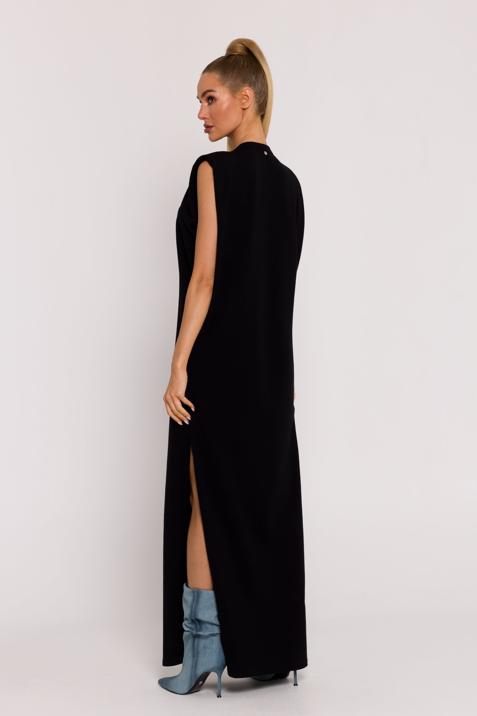 Este vestido de punto es una expresión del lujo y la excepcional sastrería polaca, donde la atención al detalle y la comodidad se unen en un solo diseño. Diseñado y confeccionado en Polonia, representa un estilo único y una gran comodidad. Este vestido oversize es una excelente opción para mujeres que valoran la libertad de movimiento sin sacrificar la elegancia. Su corte, que se lleva por la cabeza, lo hace extremadamente cómodo y fácil de llevar. La abertura lateral aporta ligereza y una sutil sensualidad. El diseño sin mangas, con hombreras, le da un toque moderno y único al conjunto. Las hombreras aportan estructura a la vez que realzan la forma única del vestido. Su largo maxi lo hace ideal tanto para salidas elegantes como para ocasiones más informales. La placa decorativa con el logotipo en la espalda no solo es un elemento de diseño, sino también un sutil detalle que enriquece todo el diseño. La cuidada confección del oropel realza la alta calidad del vestido. Además, la ausencia de forro lo hace ligero y vaporoso, ideal para los días más cálidos. Este vestido de punto no es solo una prenda, sino una expresión de la tradición sastre polaca, que combina elegancia, comodidad y un diseño único. Ideal para mujeres que buscan expresarse a través de la moda, realzando su estilo individual.