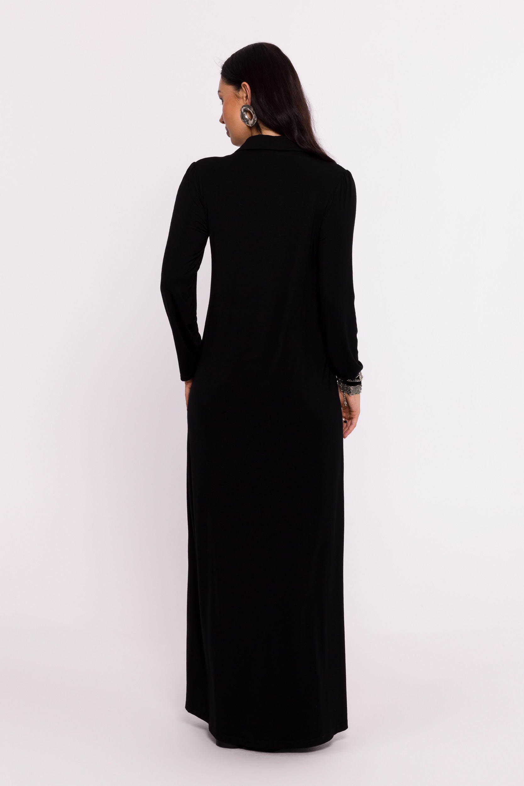 Vestido con un corte único y una confección de alta calidad, elaborado con fino punto de viscosa, que lo convierte en un auténtico placer para la piel. Este elegante vestido maxi, abotonado, le aporta un sutil toque vintage. Un elegante cuello bajo el cuello realza su look chic y sofisticado. Las mangas largas le otorgan versatilidad, permitiéndole lucirlo tanto en días fríos como en épocas más cálidas. Además, al no tener forro, resulta ligero y cómodo. El diseño y la confección de esta prenda única se realizan en Polonia, lo que realza el carácter local y la máxima calidad. Este vestido no solo es una expresión de elegancia, sino también una elección consciente de producto que apoya la moda y la artesanía polacas. Con su diseño clásico y su alta calidad de confección, es la opción perfecta para las mujeres que valoran la estética atemporal y el carácter local.