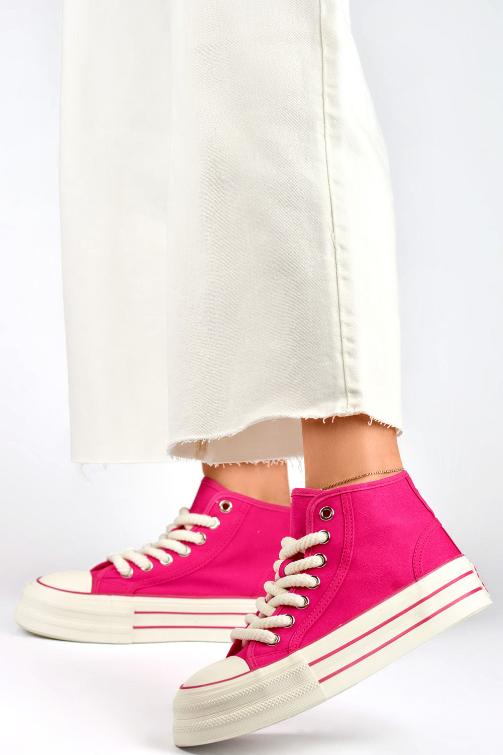 Las zapatillas en color rosa son un calzado dinámico, ideal para la mujer moderna que quiere incorporar color y estilo a su día a día. La parte superior de material textil ligero hace que estas zapatillas no sólo estén a la moda, sino también agradables de llevar. Dedicadas a las mujeres, estas zapatillas son ideales para los días de primavera y verano, pero gracias a su diseño único, también funcionarán bien durante todo el año, añadiendo energía a una variedad de looks. La plantilla textil garantiza comodidad, mientras que los cordones te permiten ajustar con precisión los zapatos a tus preferencias personales. Estas zapatillas tienen una suela de 4 cm, lo que no solo les da un aspecto deportivo, sino que también aporta confianza a tu pisada. La puntera redonda los hace ergonómicos y agradables para los pies durante diversas actividades. Las zapatillas rosas no sólo son un acento de moda, sino también una gran opción para quienes quieren combinar estilo con comodidad en el día a día.