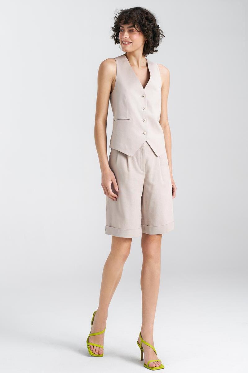 Un chaleco de corte clásico es una prenda indispensable que aporta elegancia y estilo a cualquier look. Fabricado con una mezcla de viscosa, lino y algodón de alta calidad, no solo es excepcionalmente duradero, sino también cómodo. El cierre de botones en la parte delantera le da un carácter clásico y permite ponérselo fácil y rápidamente. Además, cuenta con un forro que lo hace aún más cómodo y atractivo. Este chaleco será el complemento perfecto tanto para looks formales como informales, aportando un toque de encanto y sofisticación.