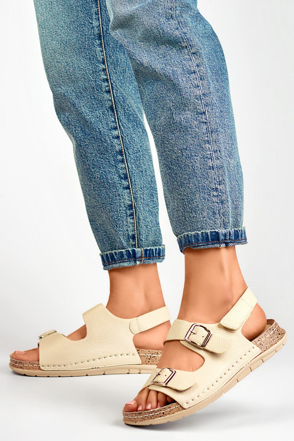 Estas sandalias de mujer confeccionadas en piel ecológica son una excelente opción para las mujeres que aprecian la combinación de estilo y comodidad. La plantilla de cuero natural proporciona una comodidad excepcional y una adaptación perfecta al pie, lo que es especialmente importante en los días cálidos. Las sandalias tienen una plataforma de 3 centímetros, lo que añade una altura sutil y proporciona comodidad al caminar. La puntera abierta les da una sensación de luminosidad y amplitud, perfecta para los días de verano. Gracias al doble cierre, velcro y hebilla, las sandalias no sólo son elegantes, sino también muy funcionales. El velcro permite ponerse y quitarse el zapato de forma rápida y cómoda, mientras que la hebilla le permite ajustar con precisión el zapato a su pie. Estas elegantes sandalias son perfectas tanto para el día a día como para ocasiones más formales, y constituyen un complemento elegante y cómodo para cualquier armario.
