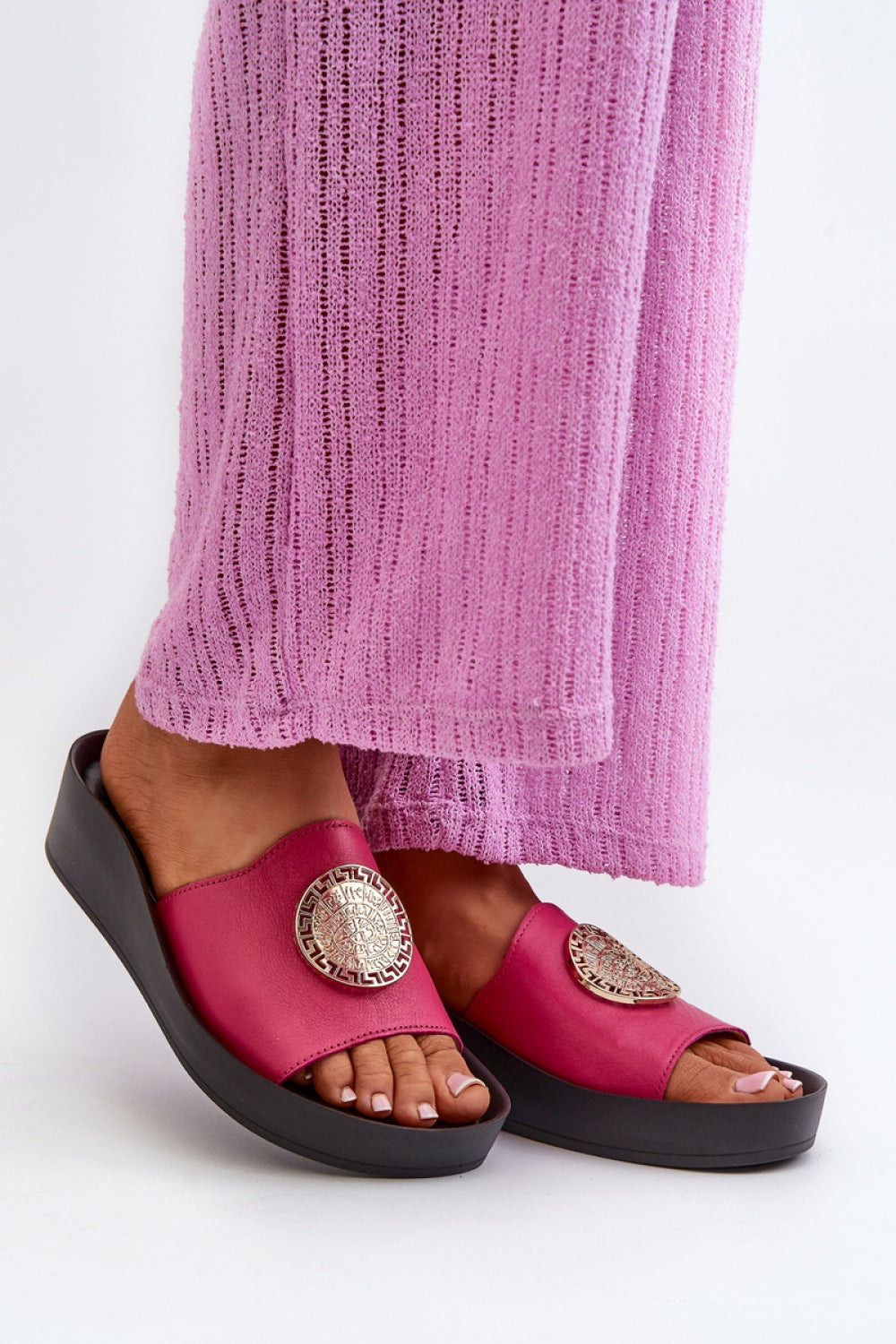 Las elegantes chanclas fabricadas en piel natural de alta calidad son la elección perfecta para las mujeres que aprecian el estilo y la comodidad. Colocados sobre un ancla, proporcionan no sólo altura extra, sino también estabilidad y apoyo para los pies durante todo el día. La plantilla suave se adapta a la forma del pie y proporciona una comodidad excepcional. Como beneficio adicional, los detalles dorados seguramente llamarán la atención. Estas chanclas son perfectas tanto para ocasiones informales como especiales, y complementan cualquier estilo, desde informal hasta más formal.