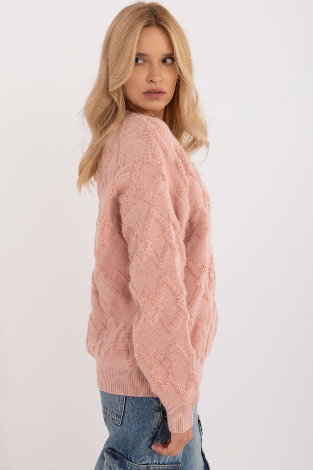 Suéter casual para mujer, perfecto para el día a día. Se caracteriza por la textura variada del punto, que le aporta una sutil elegancia. El suéter tiene un largo estándar y mangas largas, lo que proporciona comodidad para usar durante todo el día. El cuello redondo realza el carácter clásico del modelo, perfecto tanto para el trabajo como para el día a día.