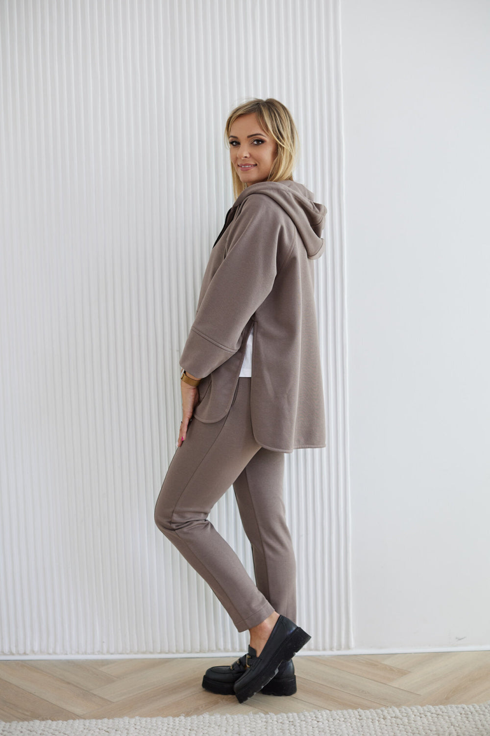 Sudadera con capucha y diseño abierto. Diseñada según los principios de la marca, pensada para mujeres maduras. Gracias a su diseño único, es perfecta para tallas grandes. La excelente calidad de confección y acabado se debe principalmente a la habilidad de quienes la confeccionaron. La sudadera está confeccionada con algodón certificado de 300 g/m², refinado mediante procesos enzimáticos y de silicona, lo que le confiere suavidad y una textura lisa. La cremallera metálica de acero inoxidable, las costuras decorativas autolap y los herrajes metálicos completan el conjunto.