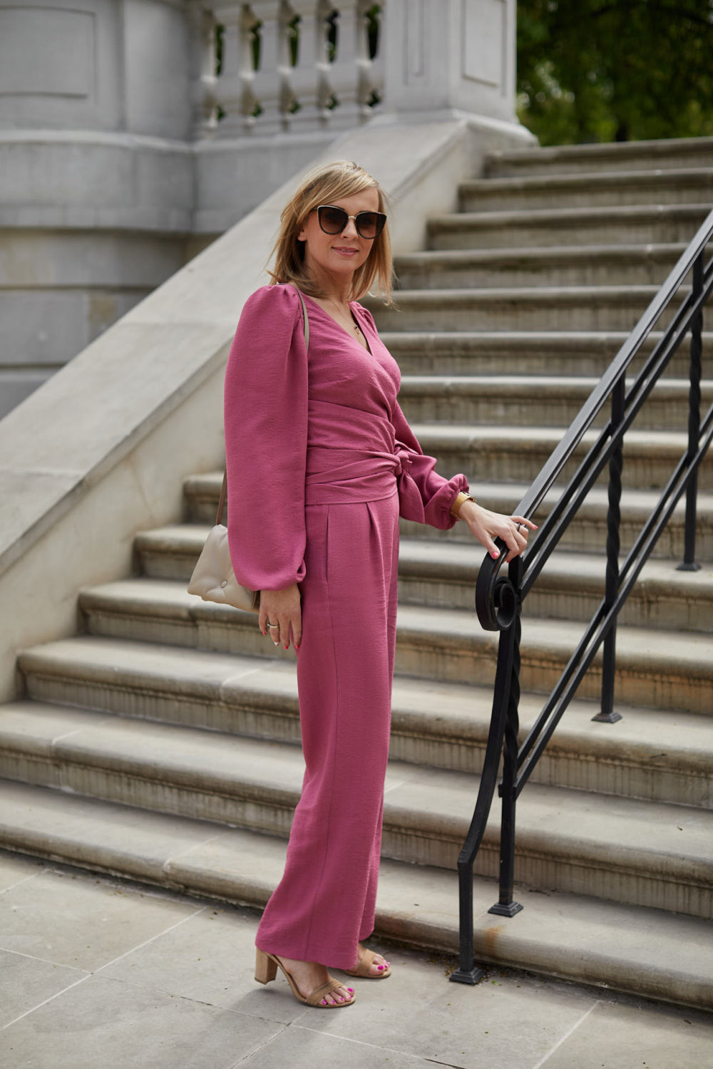 Conjunto formal de dos piezas. Está confeccionado en tela suave y natural. La blusa se ajusta con un lazo, lo que permite un ajuste perfecto a la silueta. Unos pantalones anchos (pero sin exagerar) de cintura alta completan el look. La parte delantera del pantalón es lisa y elegante, mientras que la trasera tiene una banda elástica de 5 cm, que lo hace cómodo y se ajusta a la silueta. Además, una cremallera lateral oculta facilita su colocación y extracción. Todo el conjunto está cosido con mucho cuidado. Los pantalones son fáciles de acortar.