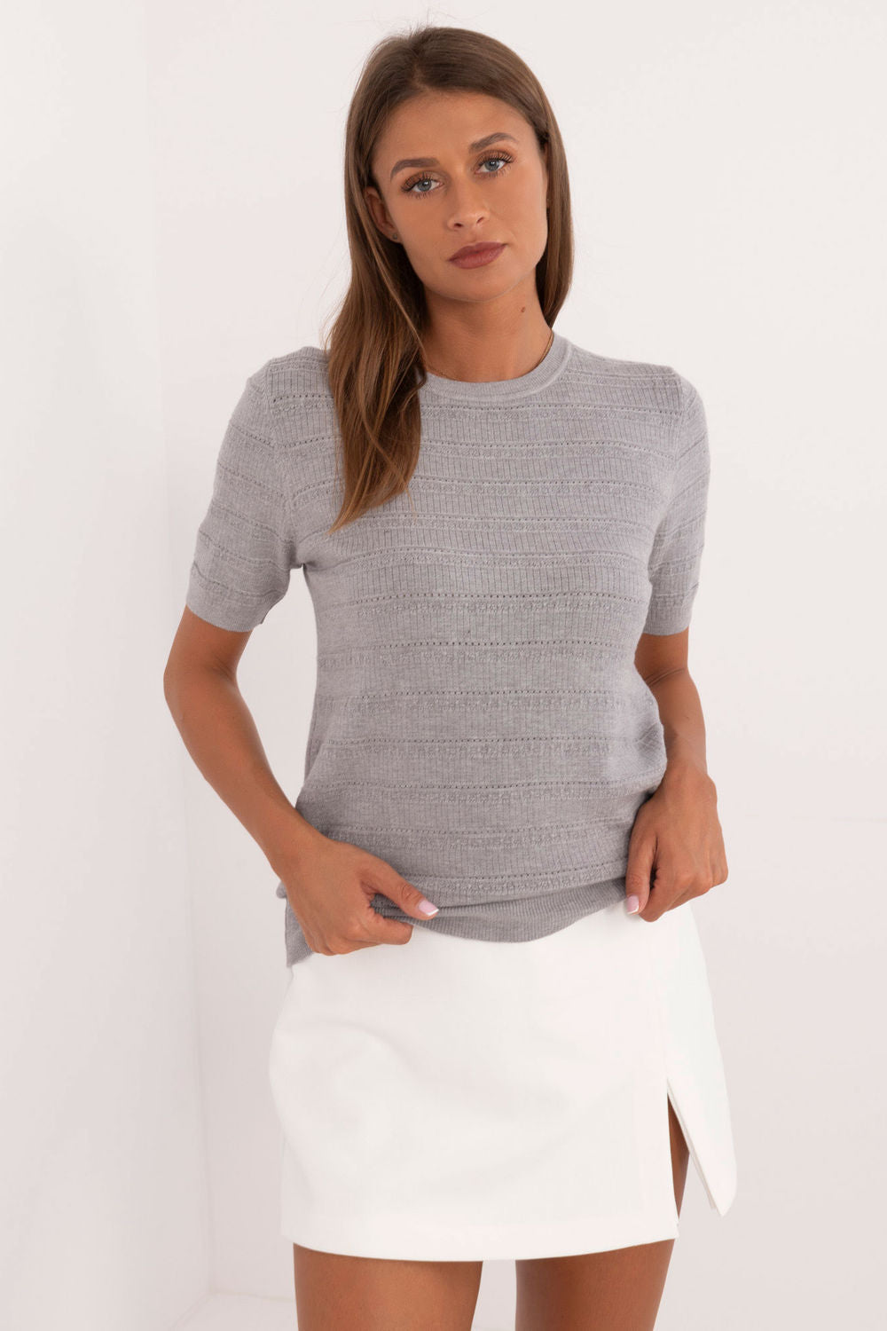 Jersey calado de estilo casual, ideal para el día a día y el trabajo. Confeccionada con una mezcla de rayón, poliamida y poliéster, brinda comodidad y durabilidad. Presenta un patrón calado que aporta ligereza y elegancia. Tiene un largo estándar, escote redondo y mangas cortas, lo que lo convierte en una prenda de armario versátil adecuada tanto para salidas informales como para la oficina. Su diseño sutil hace que sea fácil de combinar con una variedad de conjuntos, ofreciendo comodidad y un aspecto moderno.