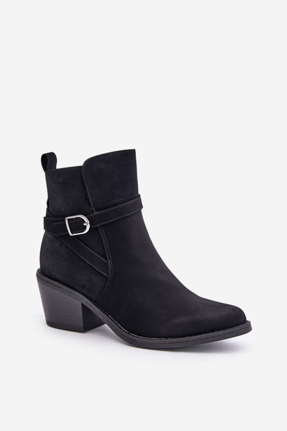 Botas estilo cowboy confeccionadas en ante ecológico. Asentado sobre un tacón en forma de poste. Interior aislado con manta para zapatos. Cierre con cremallera. La nariz puntiaguda adelgazará ópticamente las piernas. ¡Este corte de moda definitivamente debería ser tuyo!