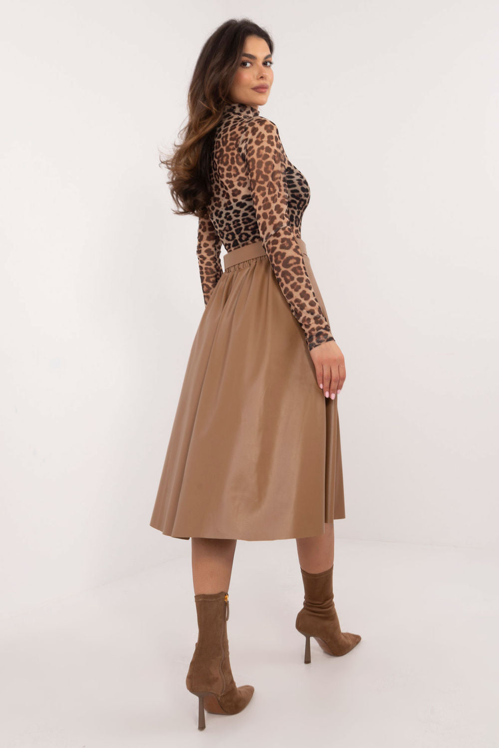 Esta falda única es la combinación perfecta de clásico y moderno. El corte acampanado realza maravillosamente la silueta y el cuero sintético aporta un toque chic. El material liso y la ausencia de adornos innecesarios hacen que la falda sea extremadamente versátil. Será perfecto tanto para el trabajo como para reuniones con amigos. La cintura elástica garantiza un uso cómodo durante todo el día. Esta falda es una inversión en tu armario. Su corte versátil y su elegante material te harán sentir segura y con estilo en cualquier situación.