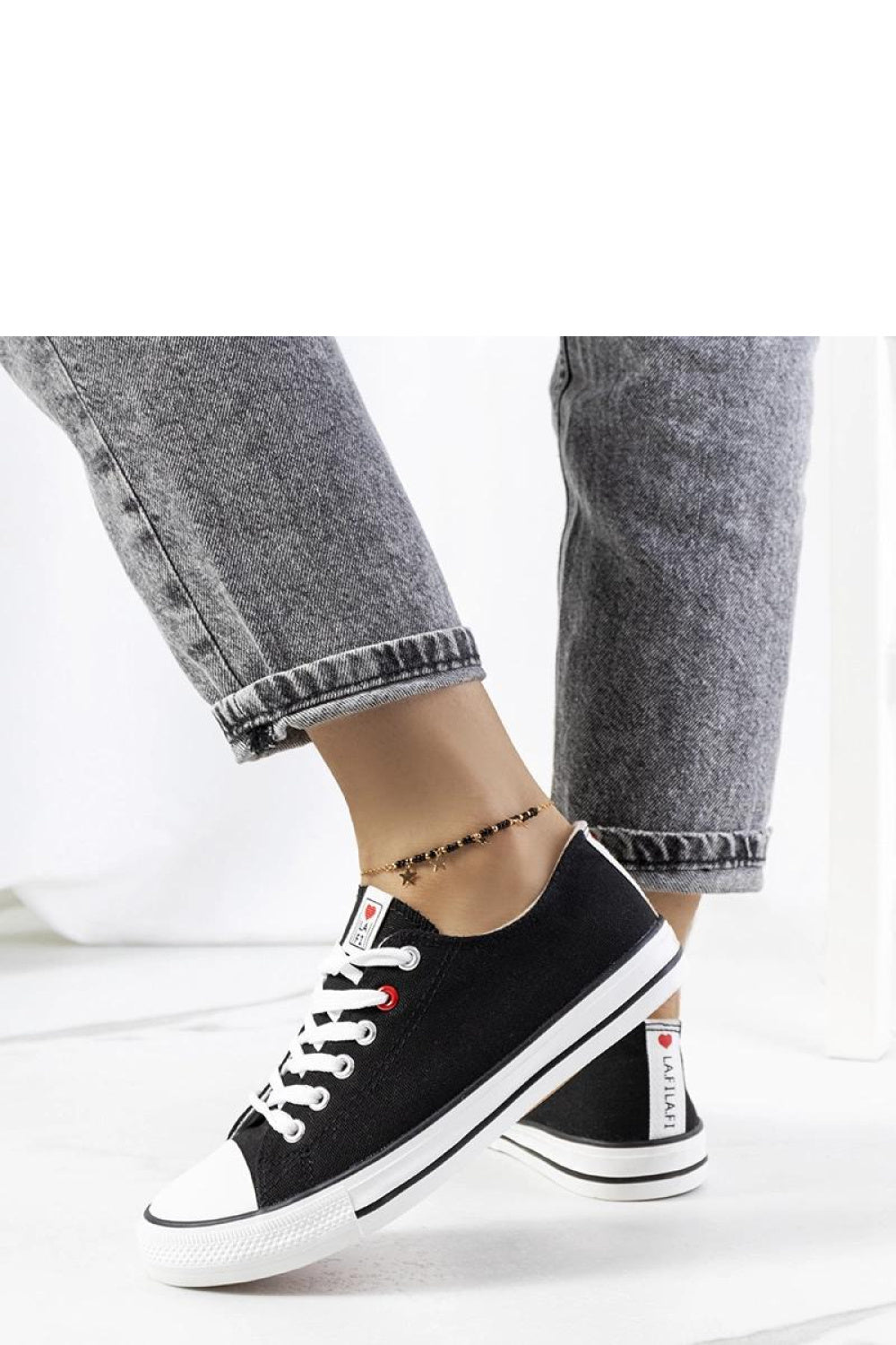 Las zapatillas clásicas negras Kolind para mujer son la opción perfecta para estilizar el verano. Su parte superior, hecha de materiales de alta calidad, garantiza comodidad. El estilo clásico de las zapatillas nunca pasa de moda, por lo que el modelo Kolind será la incorporación perfecta a tu armario. Numeración estándar, así que elige tu talla. Las zapatillas tienen cierre de cordones y la suela es de goma blanca. ¡Una excelente propuesta para el verano!