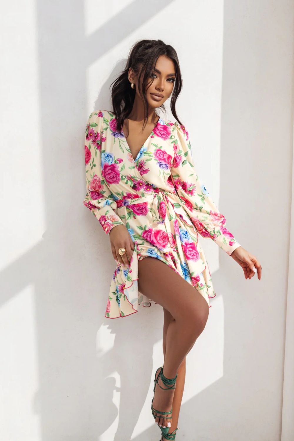 Te invitamos a conocer nuestro vestido único que combina un diseño de moda con una comodidad excepcional. Su corte más corto lo convierte en una opción ideal para muchas ocasiones, desde salidas diarias hasta fiestas de verano. El estampado floral sobre fondo amarillo aporta ligereza y frescura, encajando perfectamente en el ambiente veraniego y las tendencias primaverales. El vestido está fabricado con materiales de alta calidad, lo que garantiza no sólo la estética sino también una comodidad excepcional. La composición del tejido es 95% viscosa y 5% elastano, garantizando una excelente elasticidad y un perfecto ajuste a la silueta. La viscosa permite que la piel respire libremente, lo que hace que el vestido sea cómodo incluso en los días calurosos. No dudes en añadir esta pieza versátil y elegante a tu guardarropa. El vestido combina bien con diversos accesorios, como sandalias, alpargatas o un bolso moderno, lo que hace que cada estilismo sea único. Elige un vestido que enfatice tu estilo individual y te dé confianza en cada paso del camino.