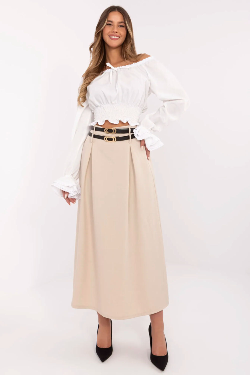 Una falda elegante es la opción perfecta para el día a día, el trabajo y ocasiones formales. Hecha de poliéster de alta calidad con un toque de elastano, garantiza comodidad y libertad de movimiento. Su patrón suave y los sutiles pliegues en la parte delantera le confieren un carácter clásico y elegante. La banda elástica cosida en la parte trasera de la cintura garantiza un ajuste perfecto, mientras que dos tiras abrochadas añaden un toque original y realzan la cintura. Al no tener un cierre clásico, el modelo es cómodo y fácil de poner. Una falda maxi combina elegancia y funcionalidad, complementando a la perfección tanto con atuendos casuales como formales.