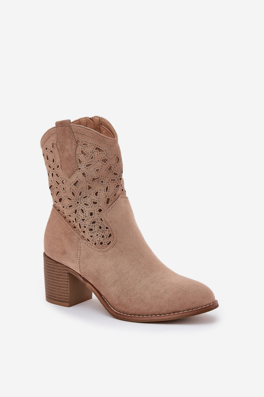 Elegantes botines para mujer, confeccionados en ante sintético de alta calidad. Con tacón de columna estable. Este modelo se distingue por su diseño calado en la parte superior. Punta de almendra. El cierre de cremallera garantiza comodidad y facilidad de colocación. Perfectos para diversas ocasiones, estos botines serán una elegante incorporación a tu armario de primavera.