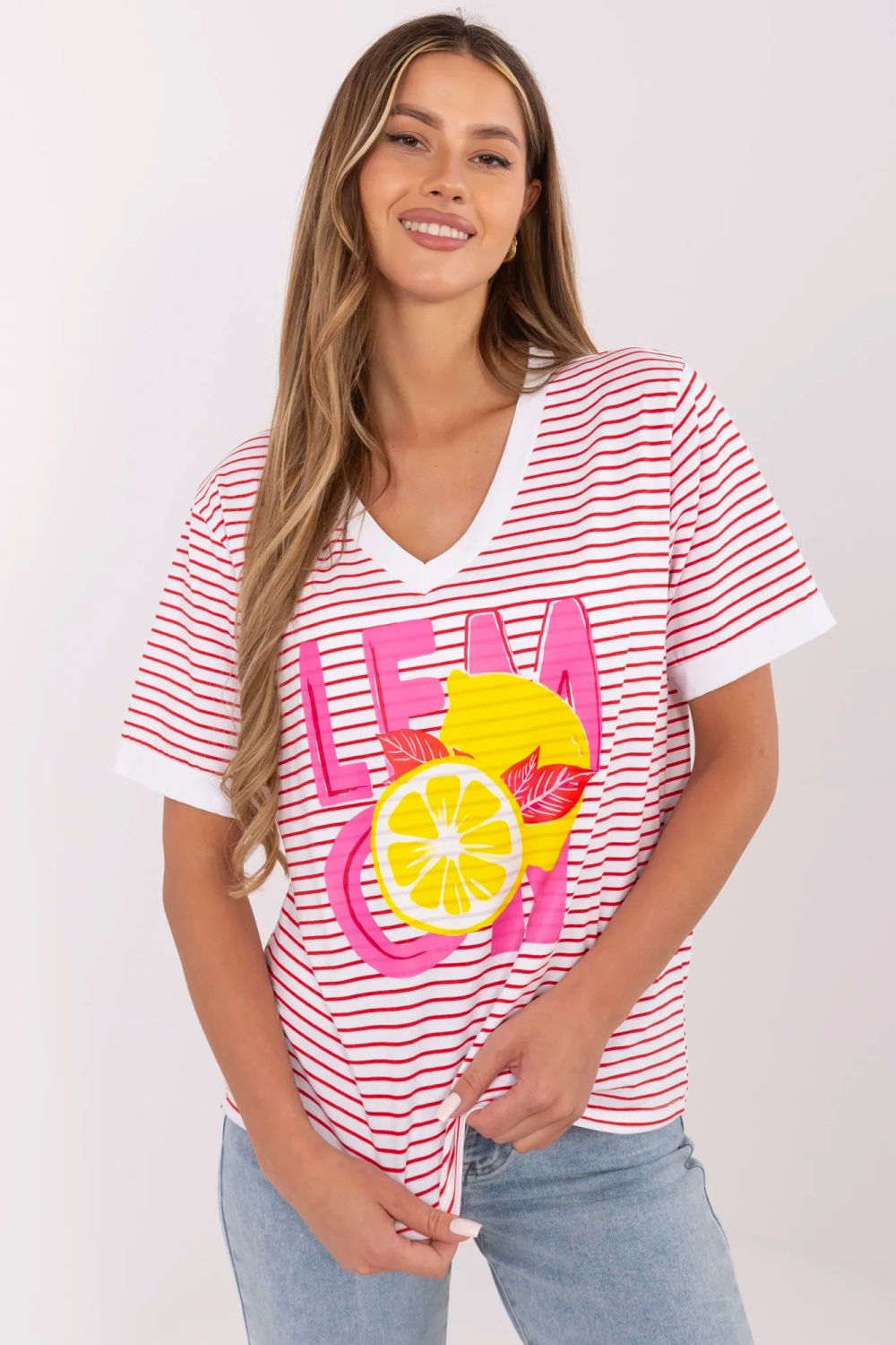 Blusa cómoda y elegante con un toque casual, perfecta para el día a día y para el trabajo. Confeccionada en una mezcla de algodón transpirable con elastano, garantiza comodidad y un ajuste perfecto. Su largo estándar y mangas cortas la convierten en la opción perfecta para los días más cálidos, y el escote en V acentúa sutilmente el cuello y le aporta un encanto femenino. El estampado de rayas le da un toque moderno, ideal para mujeres que buscan combinar comodidad con un estilo distintivo. Combina a la perfección con vaqueros y falda, ¡imprescindible en tu armario de diario!