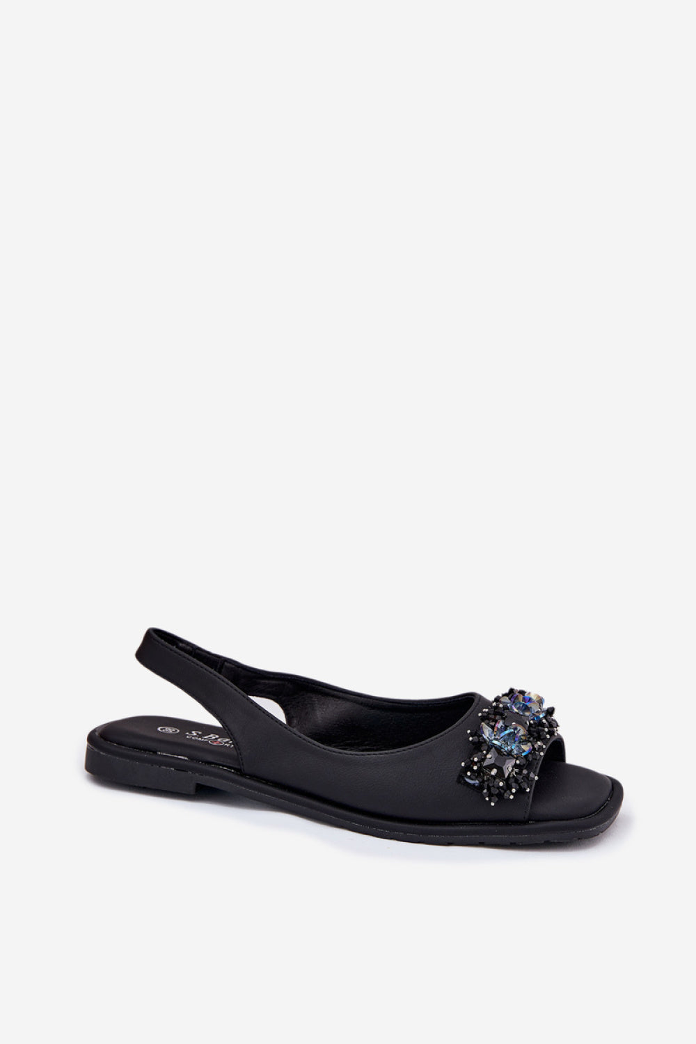 Sandalias de mujer de la marca S.Barski. Con tacón plano, son una opción elegante y cómoda para los días cálidos. Fabricadas en piel ecológica. La parte delantera está decorada con cristales, lo que les aporta un brillo único. Su plantilla muy suave garantiza comodidad durante todo el día, y su diseño sencillo pero elegante las hace ideales para muchos looks de verano. Perfectas tanto para el día a día como para salidas más elegantes.