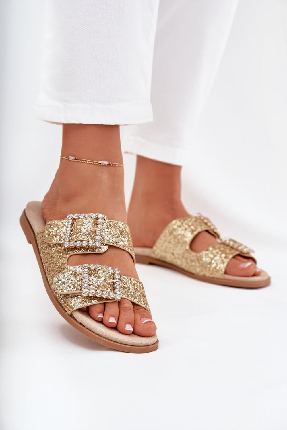 Las sandalias planas para mujer son un calzado cómodo, perfecto para los días cálidos. Este modelo cuenta con dos hebillas decorativas con tiras ajustables que permiten un ajuste perfecto al pie. La plantilla de material proporciona comodidad y transpirabilidad, lo que las hace no solo elegantes, sino también funcionales. Perfectas para el día a día, combinan comodidad con un look moderno.