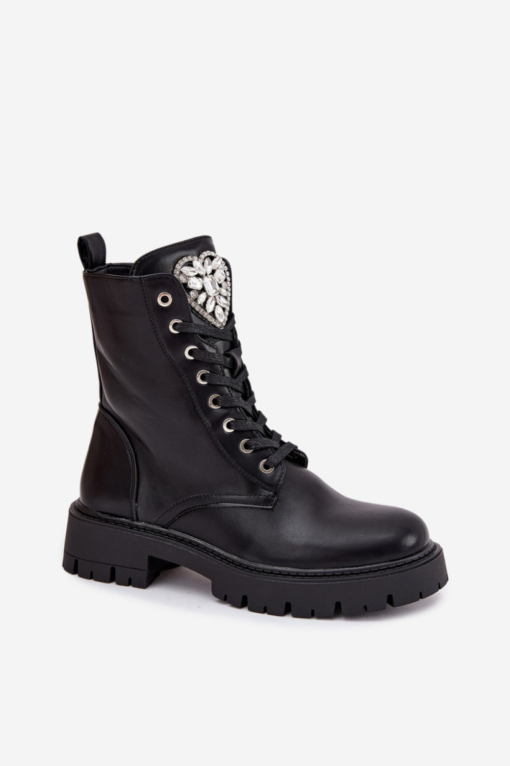 Los botines para mujer de piel ecológica son una propuesta encantadora que combina comodidad con un detalle moderno. El modelo con cordones y cremallera garantiza una fácil colocación y un ajuste perfecto al pie, y el corazón decorativo con cristales en la lengüeta aporta un toque sutil y femenino, complementando a la perfección los looks del día a día.