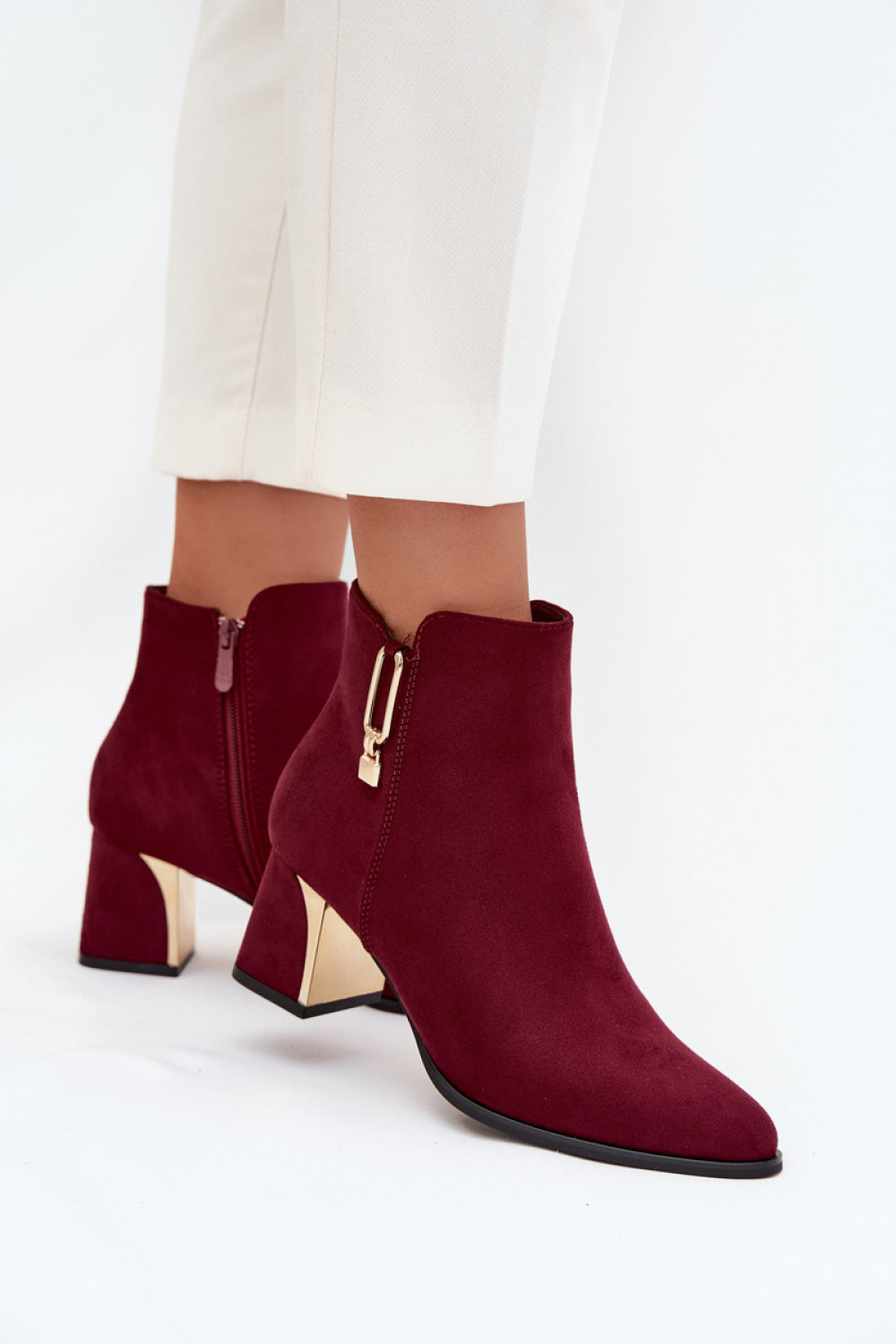 Los botines para mujer de ante ecológico son una elegante propuesta para quienes valoran la comodidad y un look moderno. Su tacón de columna estable estiliza la silueta, y la punta almendrada aporta una sutil elegancia. El modelo, con cierre de cremallera, facilita su colocación y extracción. Los detalles dorados en el talón y la parte superior le confieren un carácter elegante, que atraen la atención y realzan su diseño moderno. Estos zapatos son perfectos tanto para el día a día como para ocasiones más elegantes.