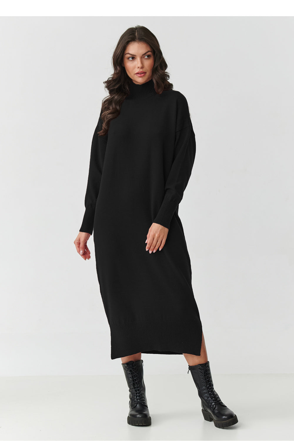 Descubre un clásico atemporal en una versión moderna: un vestido jersey midi con cuello alto es la opción perfecta para los días más frescos, cuando buscas estilo y comodidad. Su corte sencillo y ligeramente oversize estiliza sutilmente la silueta, y su largo hasta la rodilla lo hace ideal para el trabajo, reuniones o salidas nocturnas. Confeccionado en tejido de alta calidad con una composición cuidadosamente seleccionada: viscosa, suave, transpirable y agradable al tacto; PBT, que garantiza flexibilidad y durabilidad; y nailon, que mantiene la forma del vestido y evita la formación de bolitas. El cuello alto se ajusta suavemente al cuello y le aporta un toque elegante, mientras que las mangas largas proporcionan comodidad y calidez. Su diseño minimalista permite combinarlo con accesorios divertidos; queda genial con un cinturón, botas o botines, y las aberturas laterales aportan ligereza y realzan un estilo femenino. Disponible en colores elegantes y versátiles que se adaptan perfectamente a las tendencias de otoño-invierno. Este vestido jersey midi es un imprescindible en cualquier armario. Con él, podrás crear multitud de conjuntos de moda que combinan comodidad y elegancia.