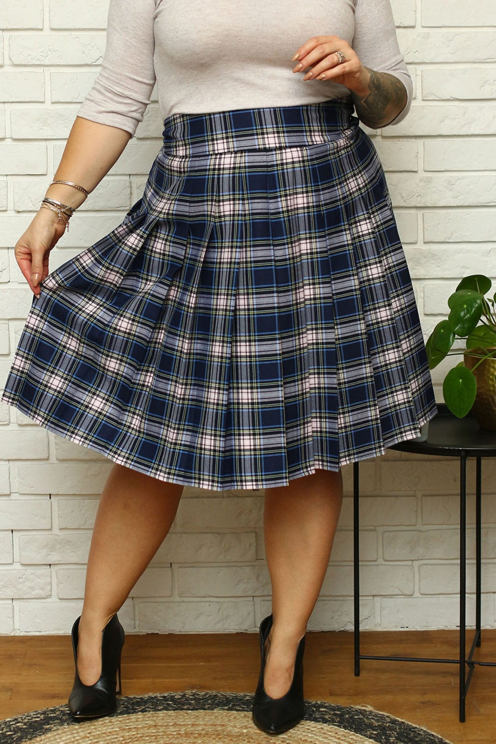 Nuestra falda Club es un modelo llamativo que hace referencia a las tradiciones escocesas. Un cuadro distintivo y siempre a la moda combinado con un corte femenino y acampanado creará un verdadero efecto sorpresa. La cintura alta y el cierre en el lateral hacen que, dependiendo de los complementos, puedas llevarlo al trabajo, dándole un carácter formal con el resto de tu estilismo. Pero encajará igual de bien con un estilismo para una cita, para ir al cine o para una reunión familiar. La falda club es un elemento muy expresivo de tu armario, así que combínala con un suéter, un jersey de cuello alto o una blusa lisos y monocromáticos. Su corte evasé combinará mejor con aquellos entallados a la figura. En cuanto a los zapatos, la mejor opción serán los modelos con tacones, stilettos o botas. Alargarán ópticamente tus piernas.