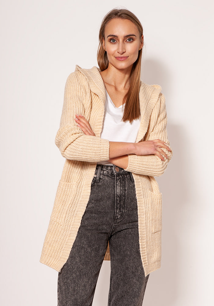 Abrigo de punto suave confeccionado en una fábrica familiar polaca. Corte minimalista con ribete fino, hombros caídos y bolsillos laterales.