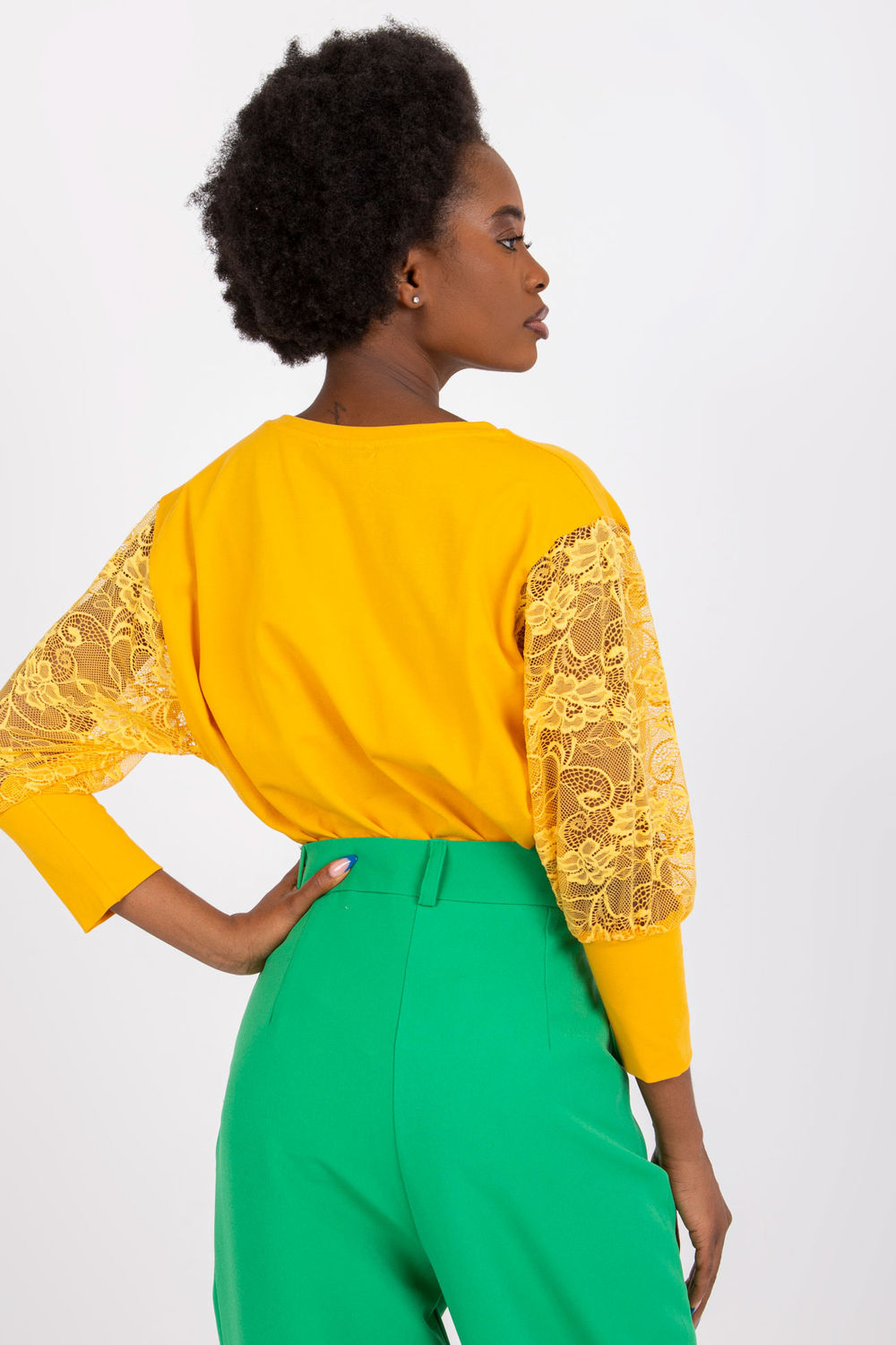 Blusa de corte recto con mangas 3/4 de encaje y escote redondo.