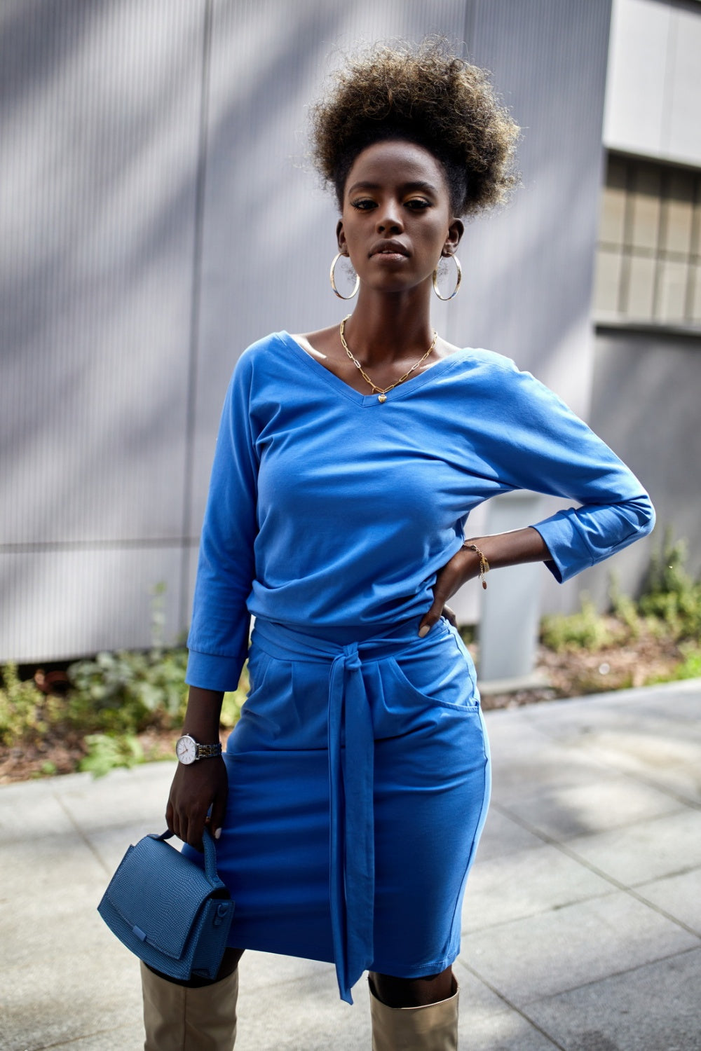 Te presentamos un vestido versátil apto para todas las estaciones desde el invierno hasta el verano. Se adapta a muchas ocasiones: para el trabajo, informal, de fiesta o como vestido formal. Un cierre de lazo añade un toque encantador. El escote en punta en la espalda aporta sutileza. Confeccionado en algodón, lo que garantiza comodidad de uso. Sin estampados, y la manga que termina en puño y la manga cónica añaden un detalle único. Este vestido es una opción elegante y práctica para una variedad de ocasiones.