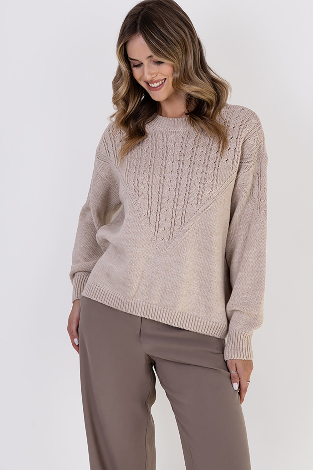 Este suéter tiene un carácter atrevido y deportivo. No es de extrañar que nos inspiramos en una sudadera clásica para crearlo. Por eso, los cuadros están dispuestos en punta (lo que, por cierto, estiliza la silueta). Además, no le falta un toque femenino, gracias a sus delicadas e intrincadas trenzas. Y aunque combina extremos, en conjunto luce muy elegante y, admitámoslo, es extremadamente original.