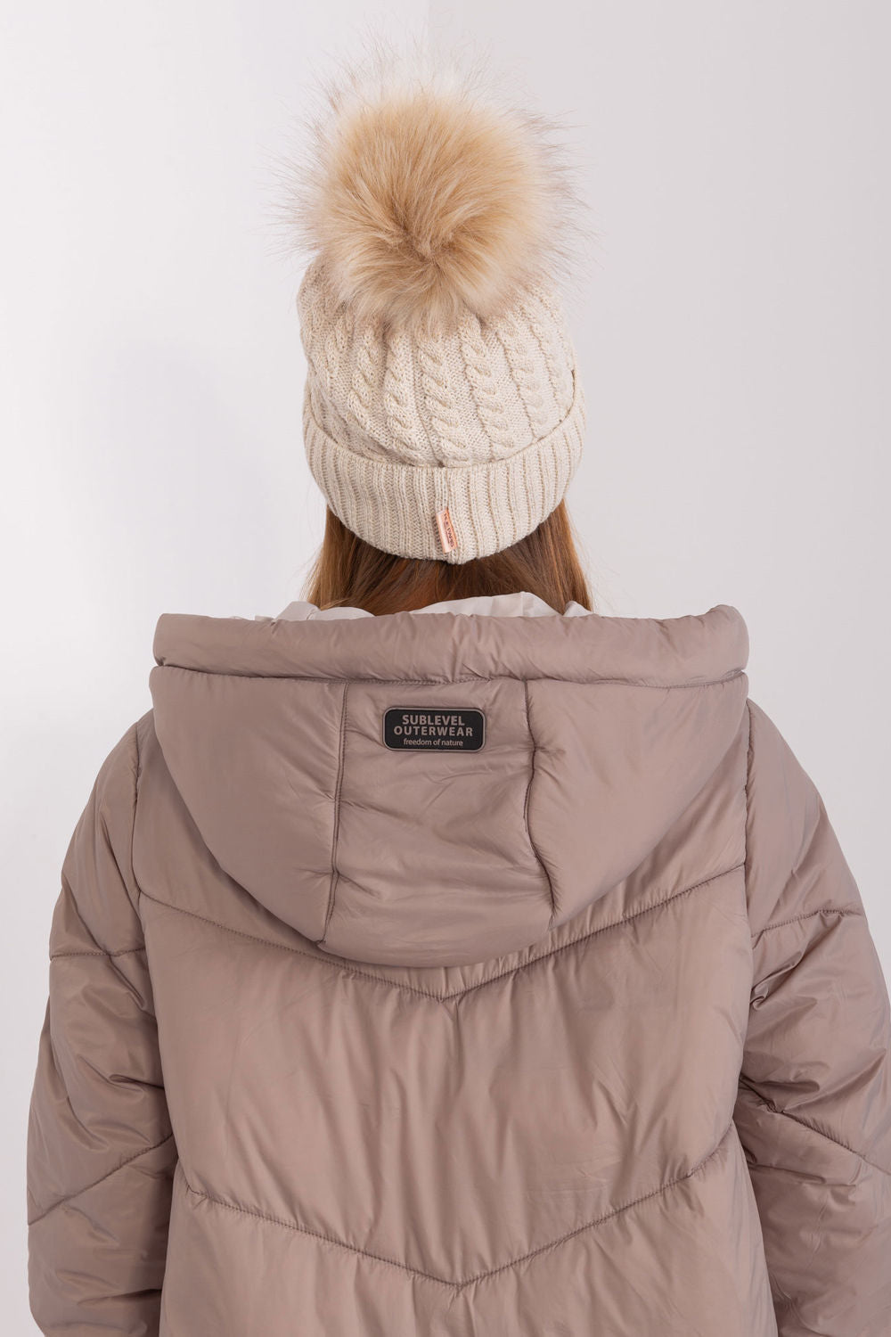 Gorro de invierno para mujer con vuelta, tejido de cuadros decorativos y pompón.