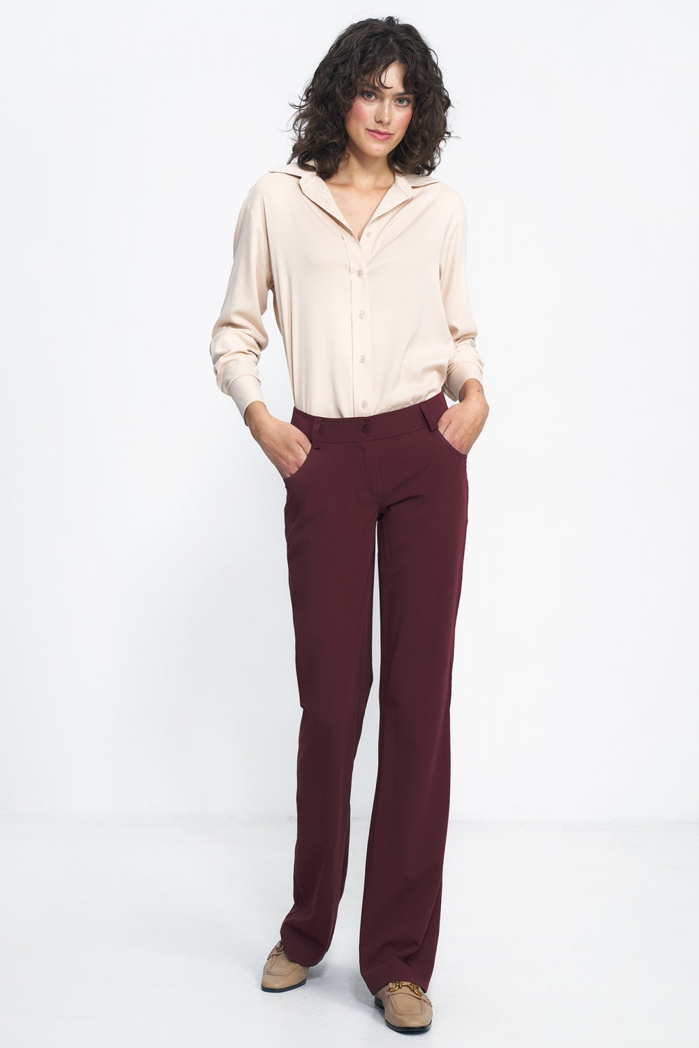 Los pantalones bootcut son un modelo que lleva varios años en las colecciones. Dominarán las tendencias durante mucho tiempo, solo que en diferentes combinaciones. Con unos tacones de aguja, estilizarás y alargarás tus piernas. Con una chaqueta del mismo color, crearás el conjunto perfecto para la oficina. También quedan genial con un jersey holgado y zapatos planos. ¡Un clásico que sin duda encontrará un lugar en tu armario!