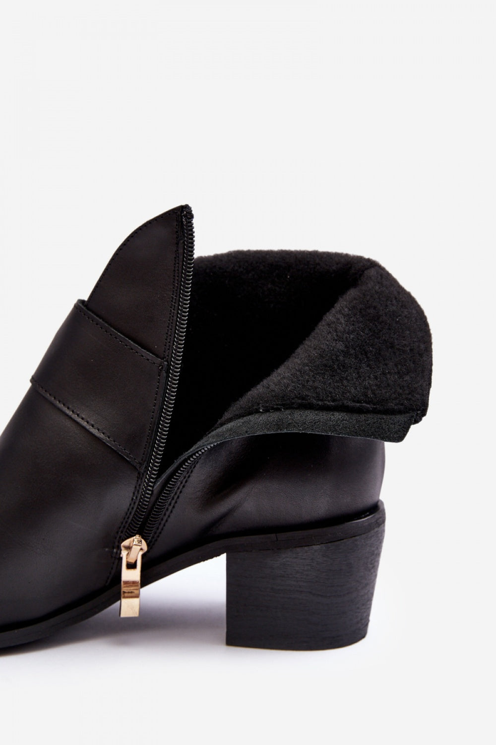 Las botas de mujer estaban hechas de cuero natural de alta calidad. El modelo tenía un tacón de bloque bajo. Llevan un cinturón decorativo con una hebilla grande. Interior aislado con manta para zapatos. Dedos almendrados. Este modelo es una opción ideal para los días fríos de otoño. ¡Deberías tenerlo!